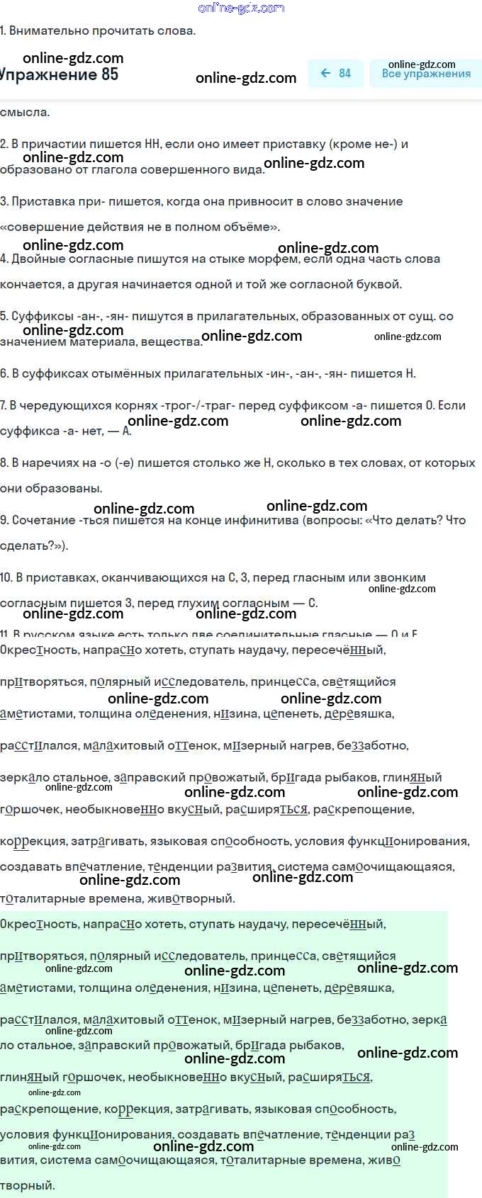 Готовые домашние задания по Русскому языку за 9 класс Учебник Разумовская, Львова Вертикаль 2018 - Упражнения 85