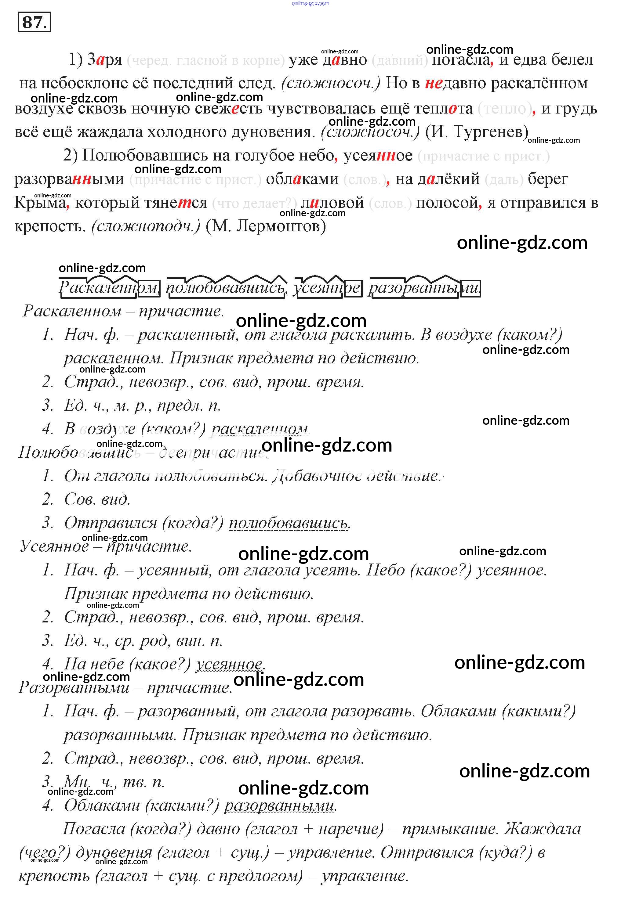 Готовые домашние задания по Русскому языку за 9 класс Учебник Разумовская, Львова Вертикаль 2018 - Упражнения 87