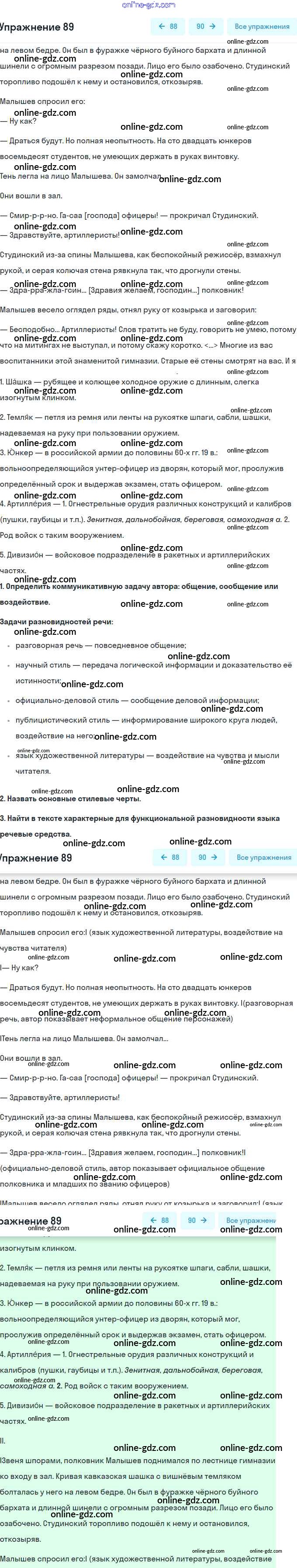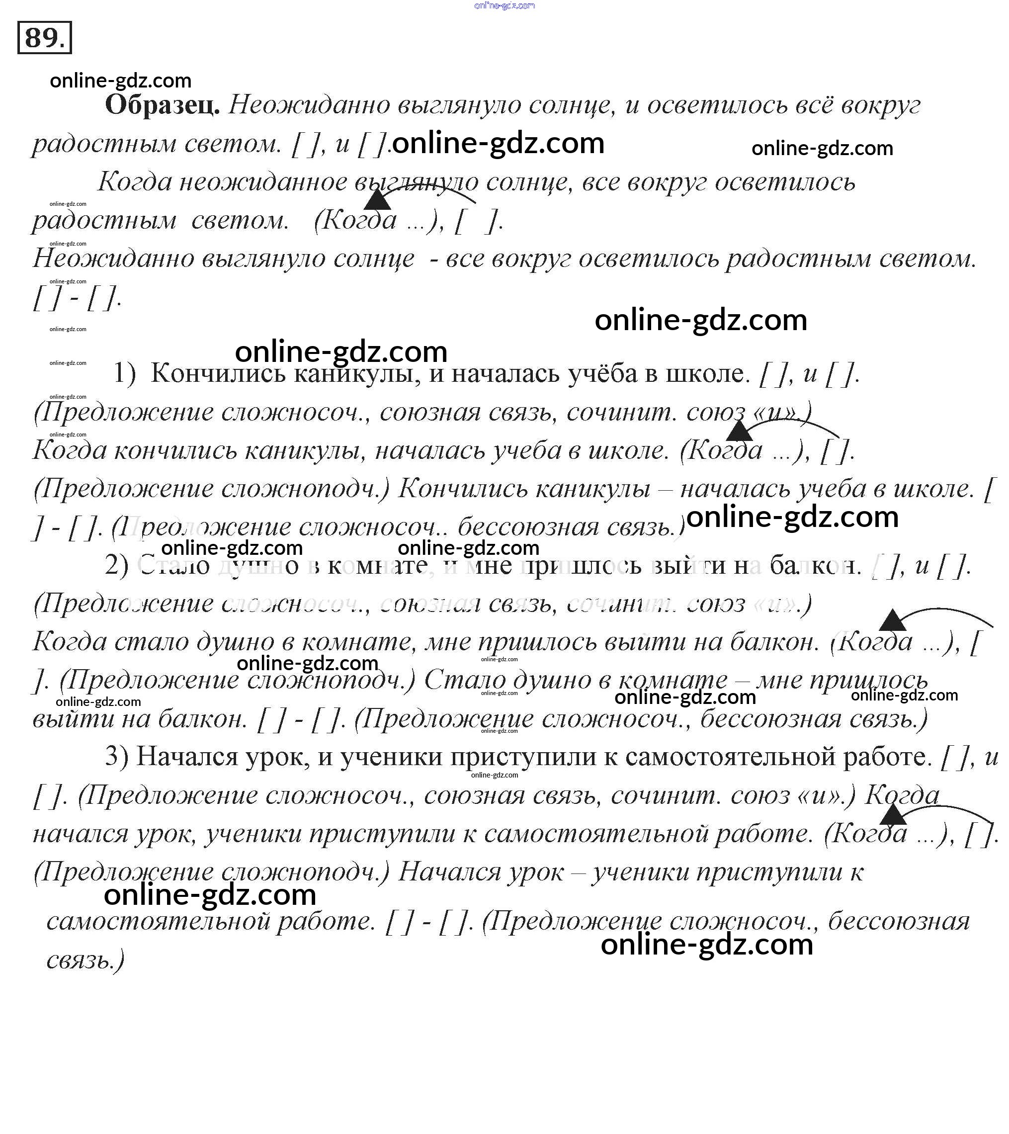 Готовые домашние задания по Русскому языку за 9 класс Учебник Разумовская, Львова Вертикаль 2018 - Упражнения 89