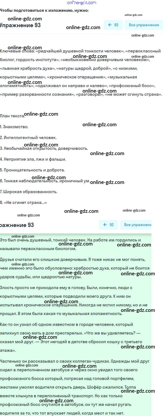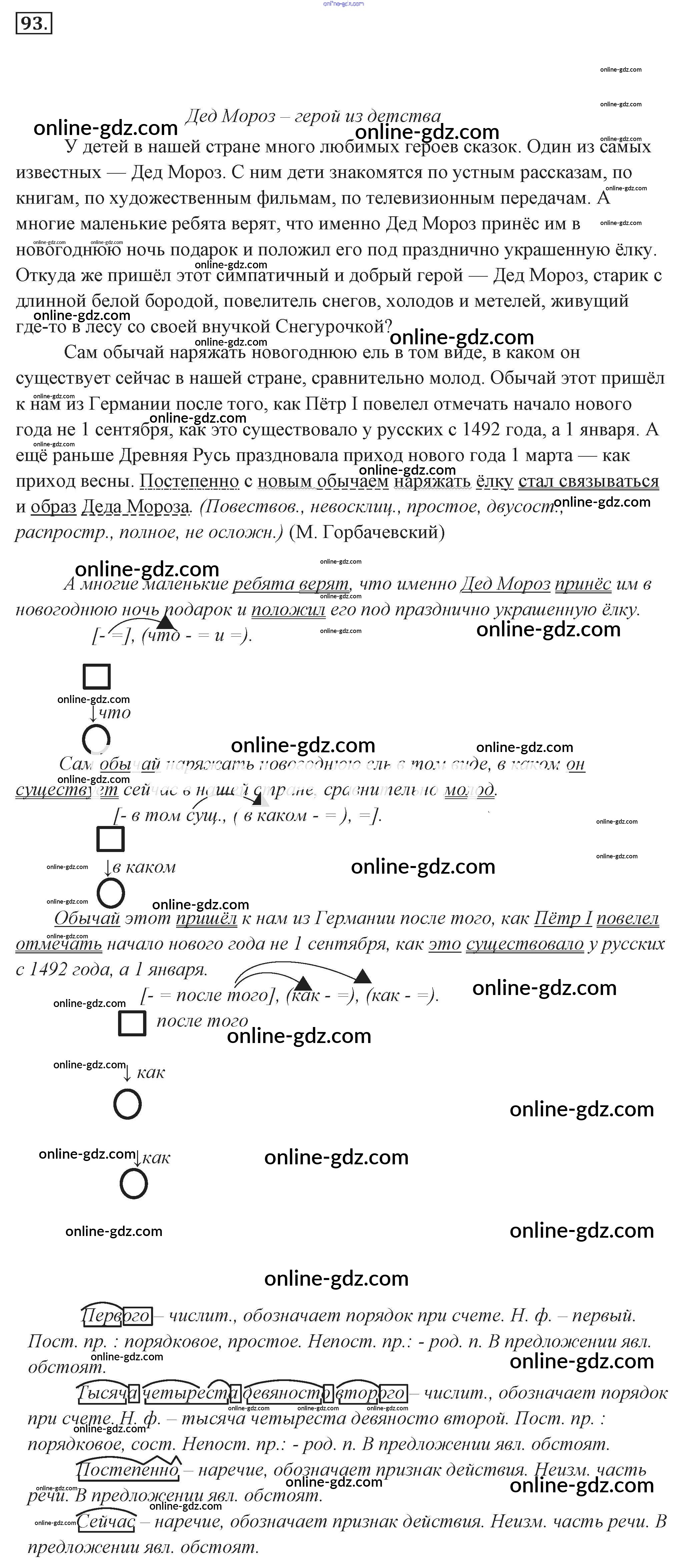 Готовые домашние задания по Русскому языку за 9 класс Учебник Разумовская, Львова Вертикаль 2018 - Упражнения 93