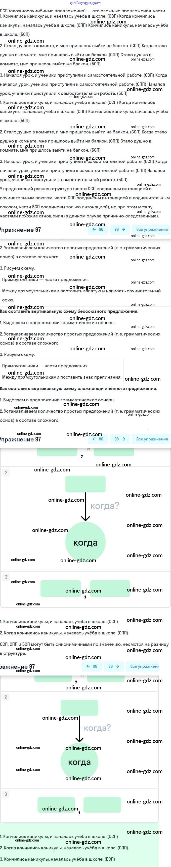 Готовые домашние задания по Русскому языку за 9 класс Учебник Разумовская, Львова Вертикаль 2018 - Упражнения 97