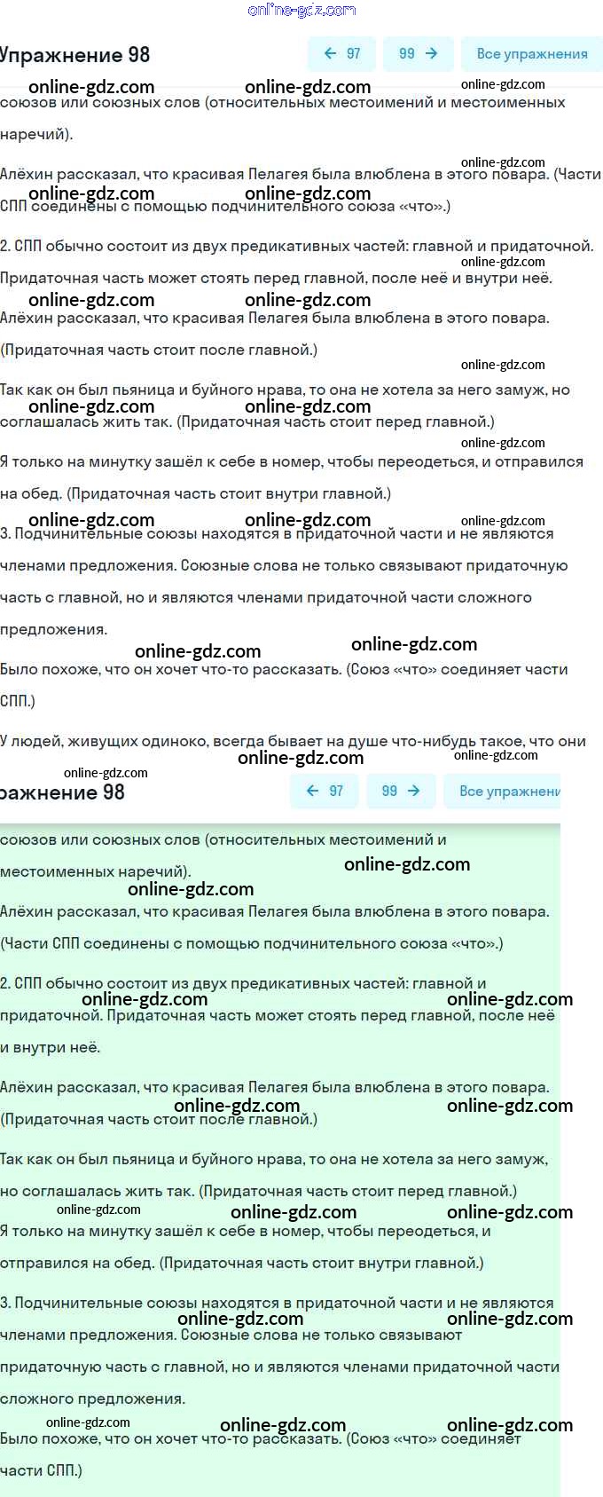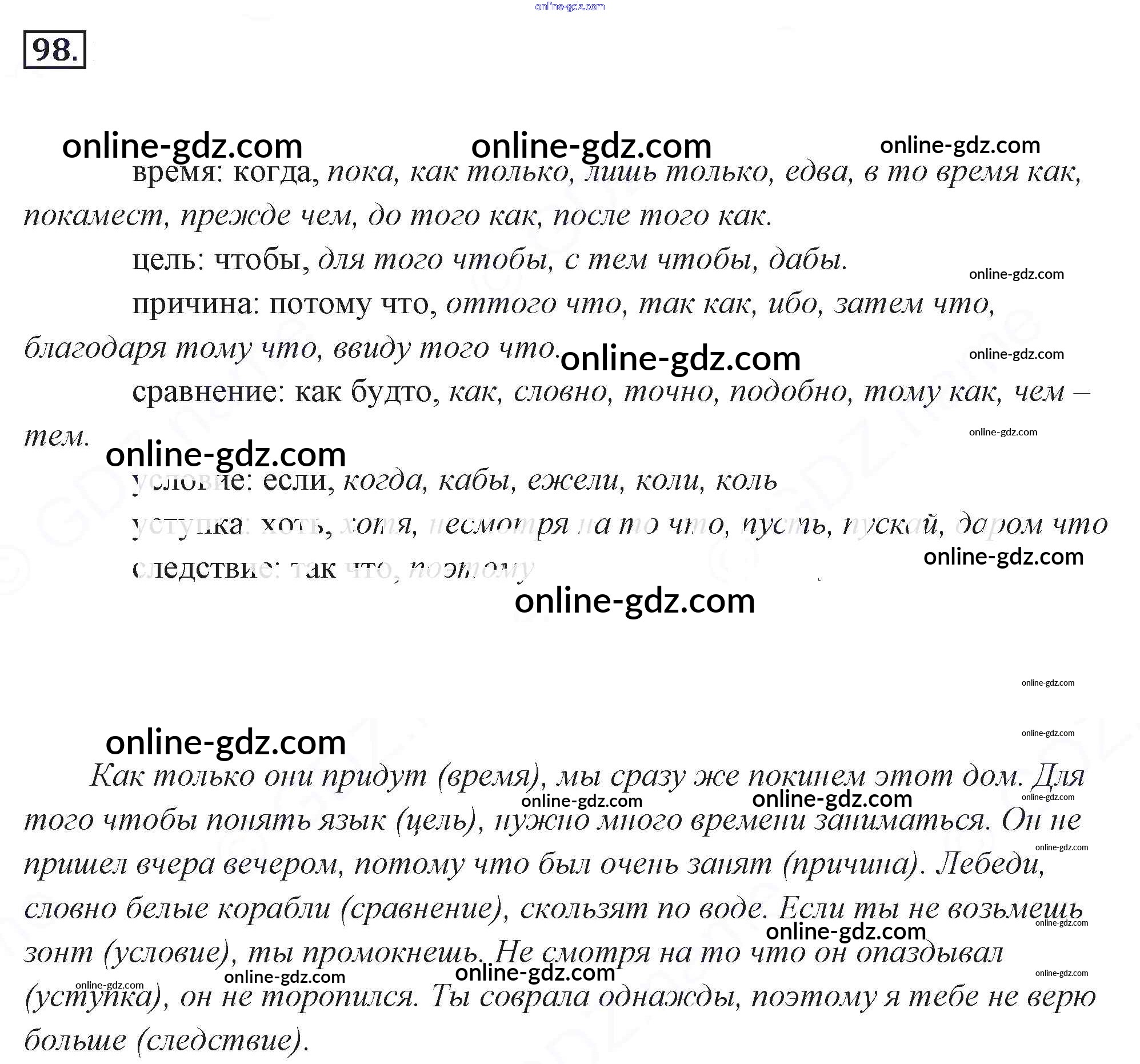 Готовые домашние задания по Русскому языку за 9 класс Учебник Разумовская, Львова Вертикаль 2018 - Упражнения 98