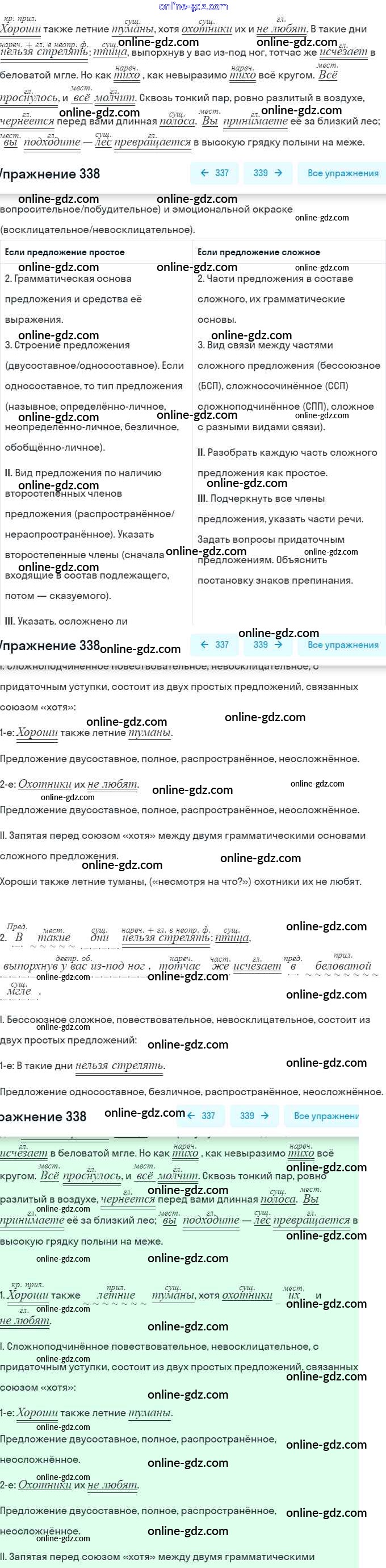 Готовые домашние задания по Русскому языку за 9 класс Учебник Разумовская, Львова Вертикаль 2018 - Упражнения 338
