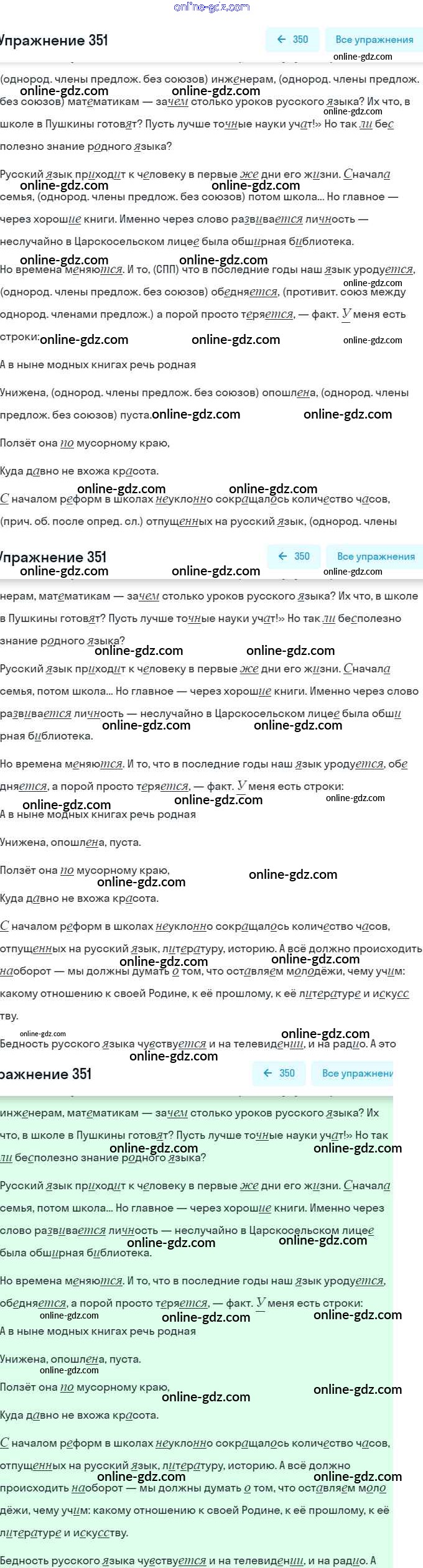 Готовые домашние задания по Русскому языку за 9 класс Учебник Разумовская, Львова Вертикаль 2018 - Упражнения 351