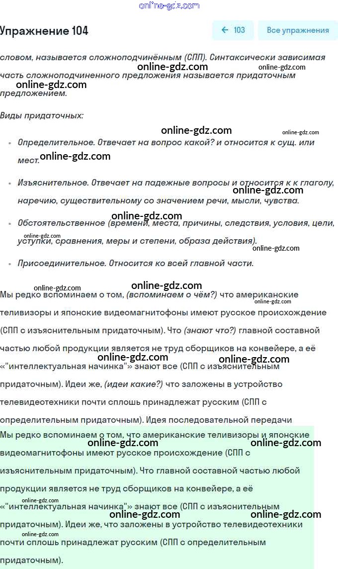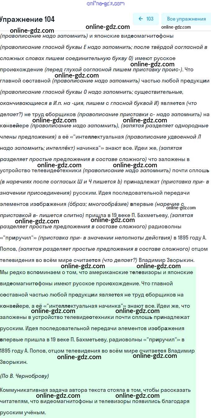 Готовые домашние задания по Русскому языку за 9 класс Учебник Рыбченкова, Александрова УМК 2018 - Упражнения 104
