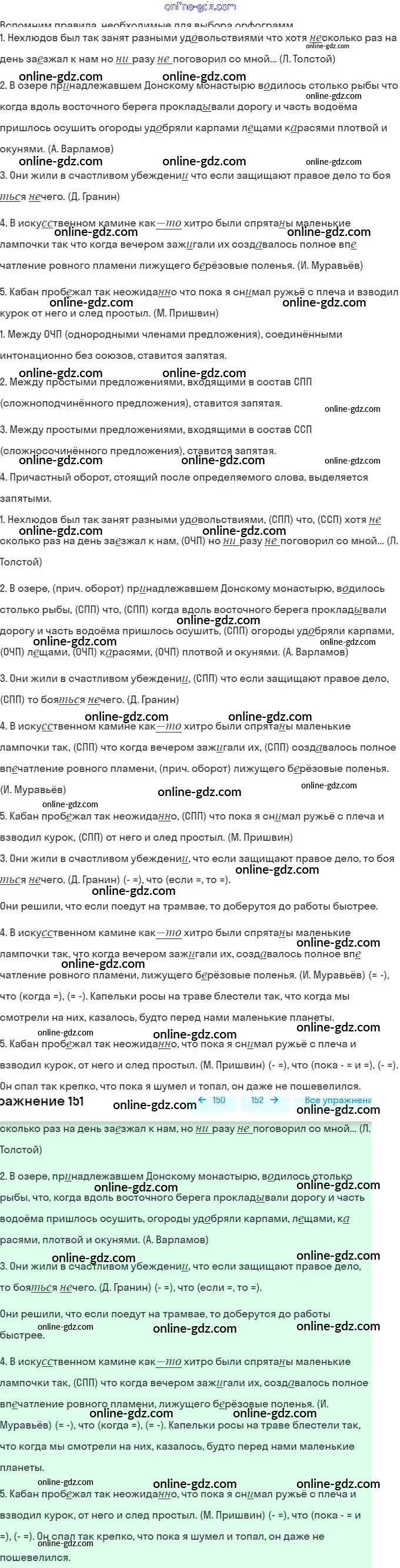 Готовые домашние задания по Русскому языку за 9 класс Учебник Рыбченкова, Александрова УМК 2018 - Упражнения 151