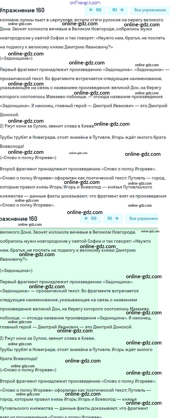 Готовые домашние задания по Русскому языку за 9 класс Учебник Рыбченкова, Александрова УМК 2018 - Упражнения 160