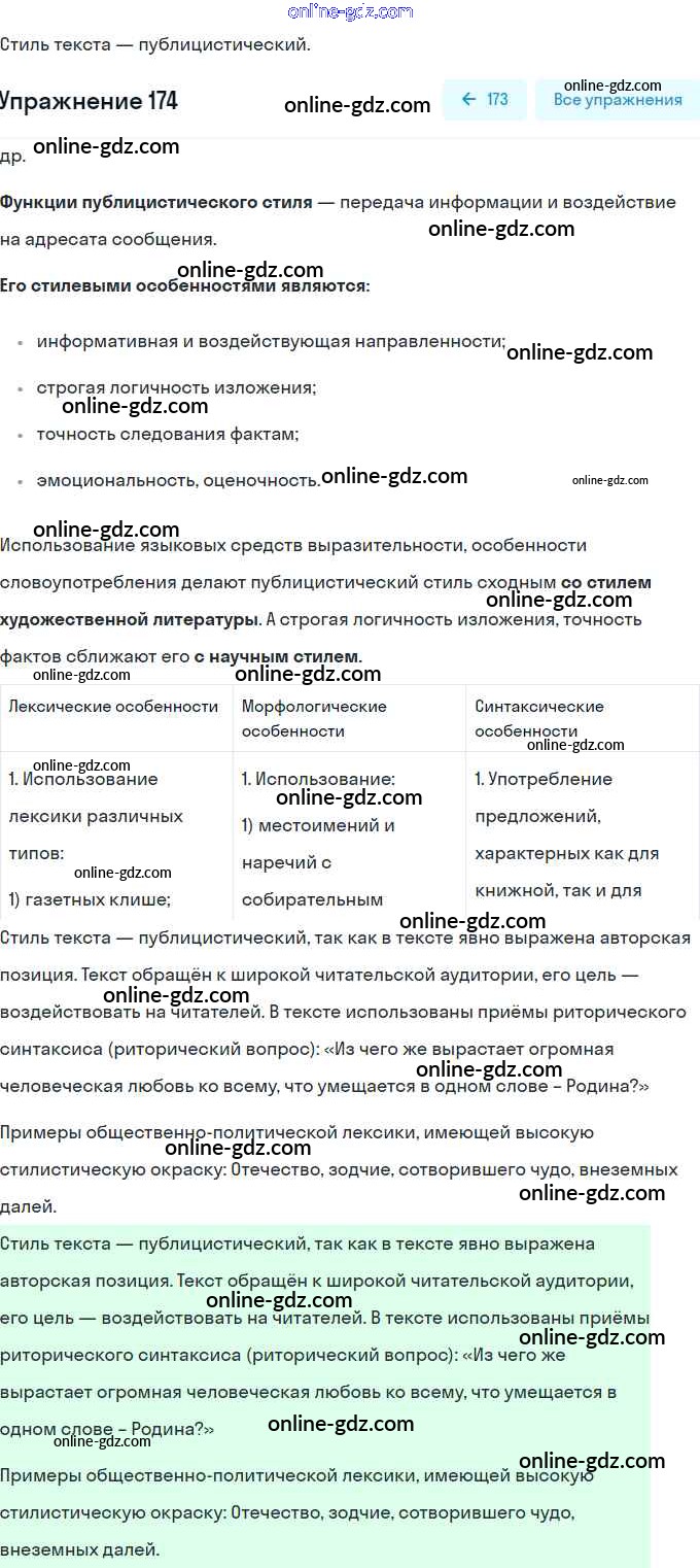 Готовые домашние задания по Русскому языку за 9 класс Учебник Рыбченкова, Александрова УМК 2018 - Упражнения 174