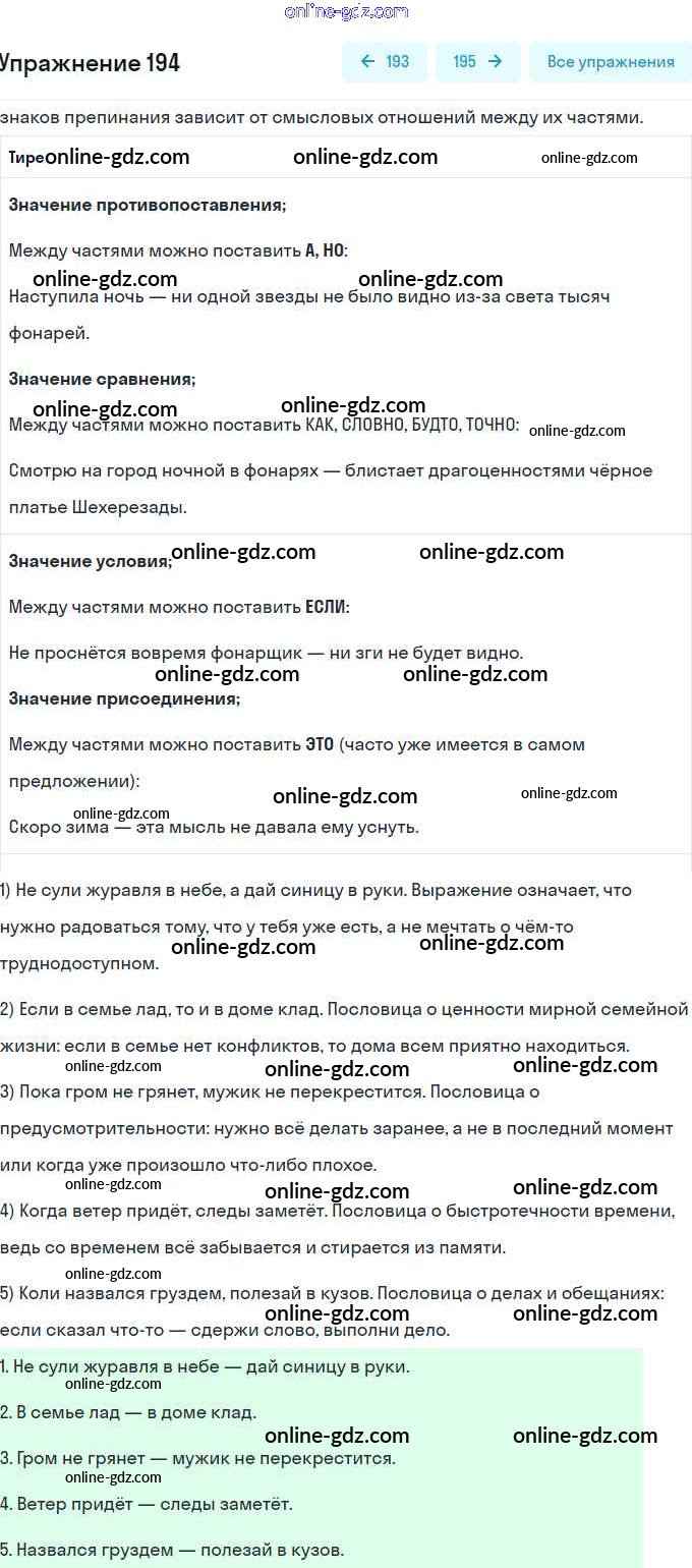 Готовые домашние задания по Русскому языку за 9 класс Учебник Рыбченкова, Александрова УМК 2018 - Упражнения 194