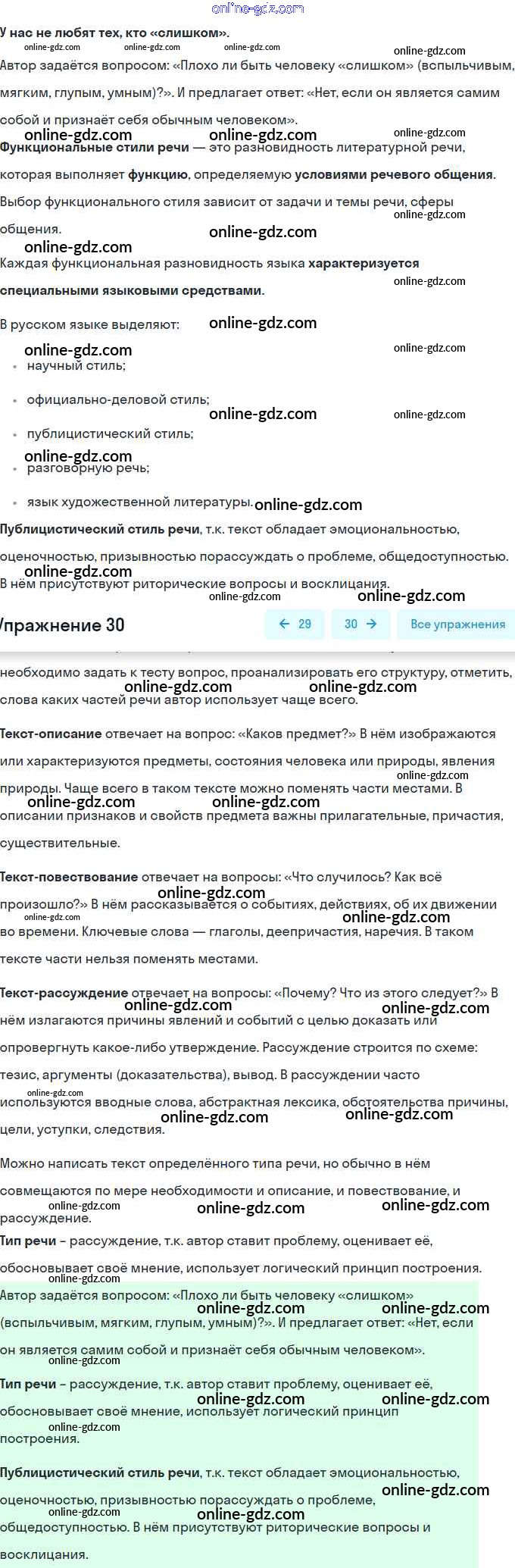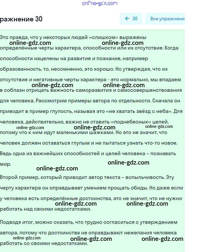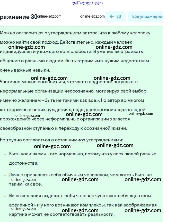 Готовые домашние задания по Русскому языку за 9 класс Учебник Рыбченкова, Александрова УМК 2018 - Упражнения 30