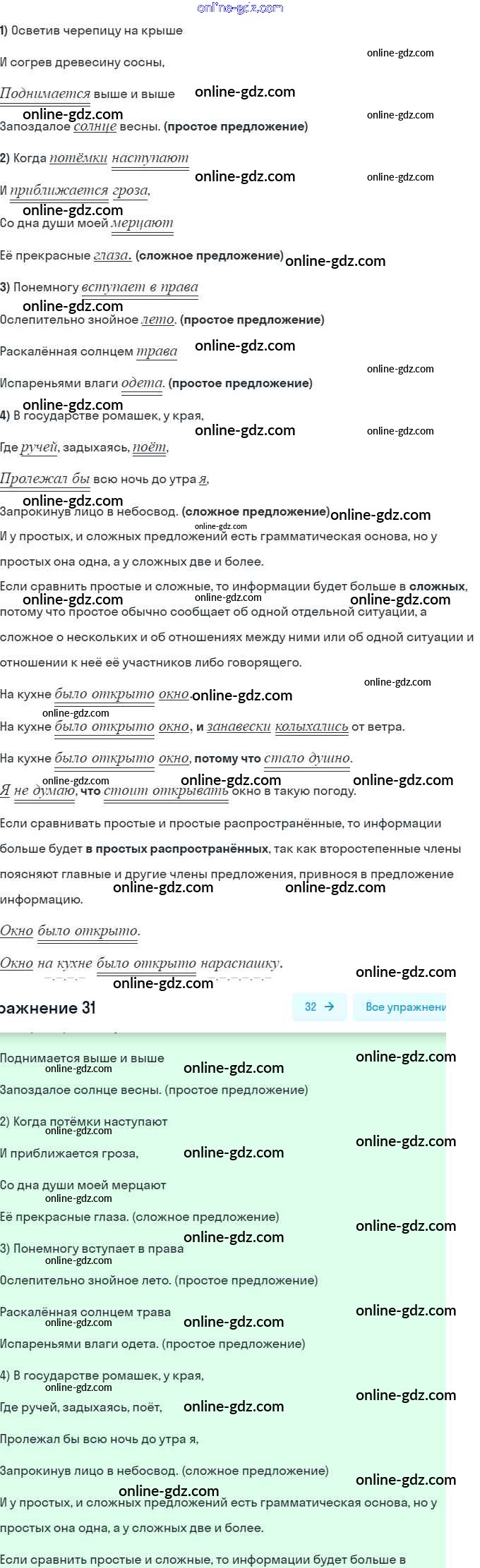 Готовые домашние задания по Русскому языку за 9 класс Учебник Рыбченкова, Александрова УМК 2018 - Упражнения 31