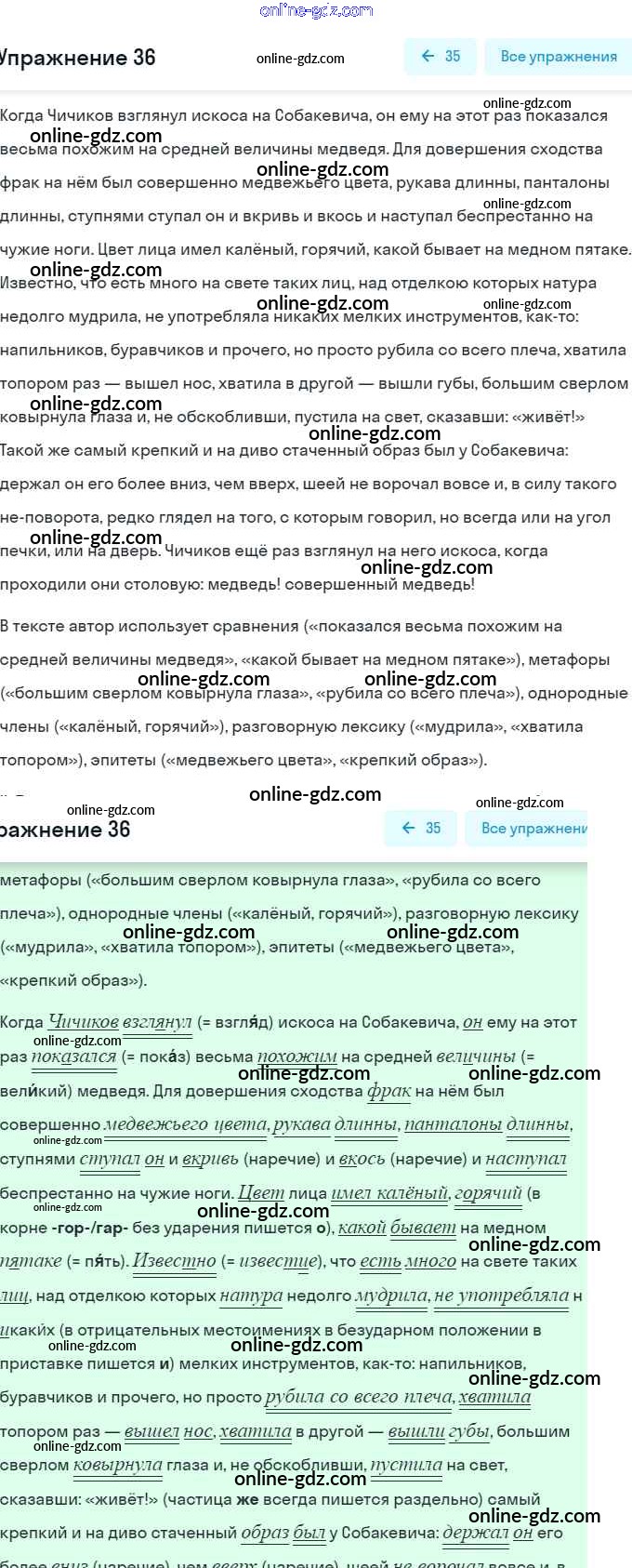 Готовые домашние задания по Русскому языку за 9 класс Учебник Рыбченкова, Александрова УМК 2018 - Упражнения 36