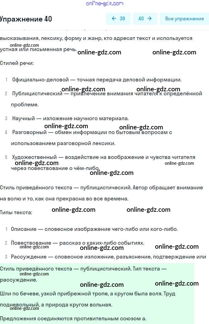 Готовые домашние задания по Русскому языку за 9 класс Учебник Рыбченкова, Александрова УМК 2018 - Упражнения 40