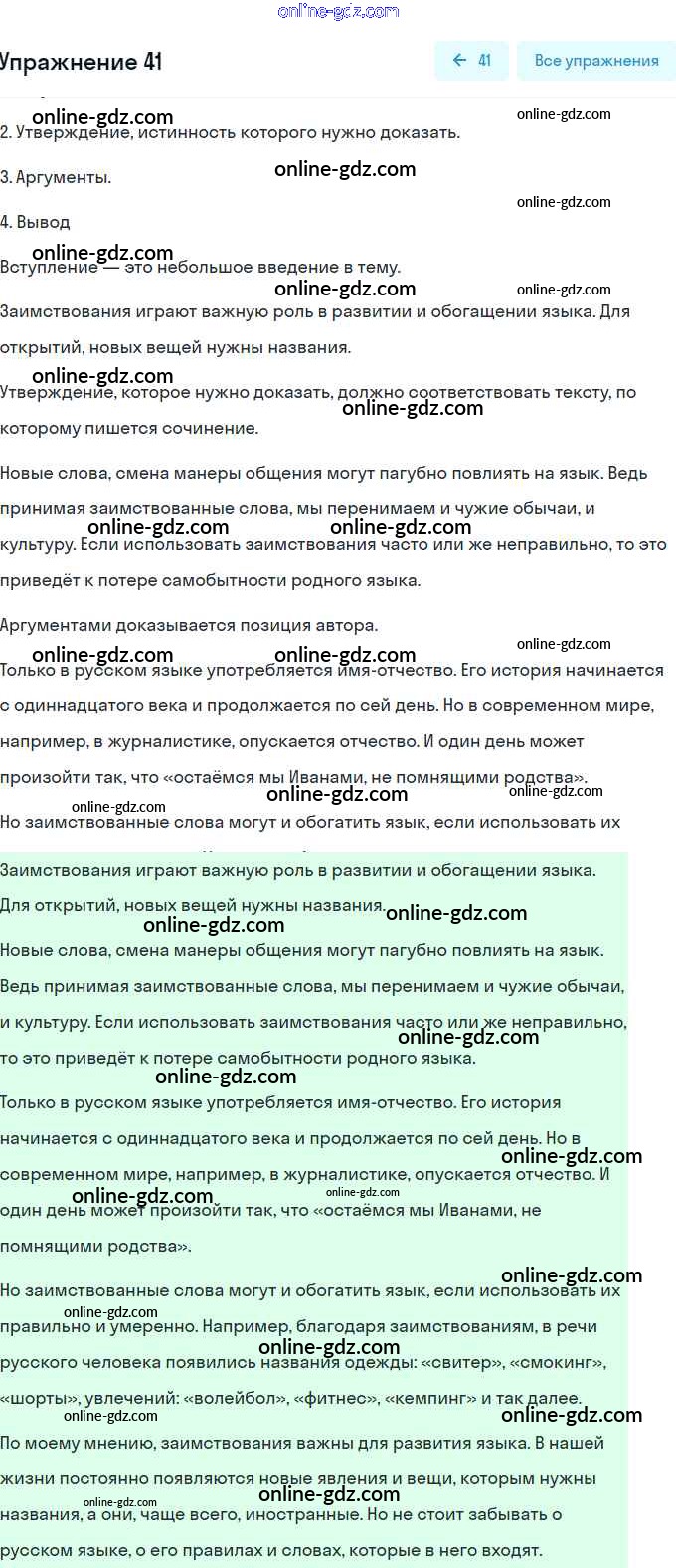 Готовые домашние задания по Русскому языку за 9 класс Учебник Рыбченкова, Александрова УМК 2018 - Упражнения 41