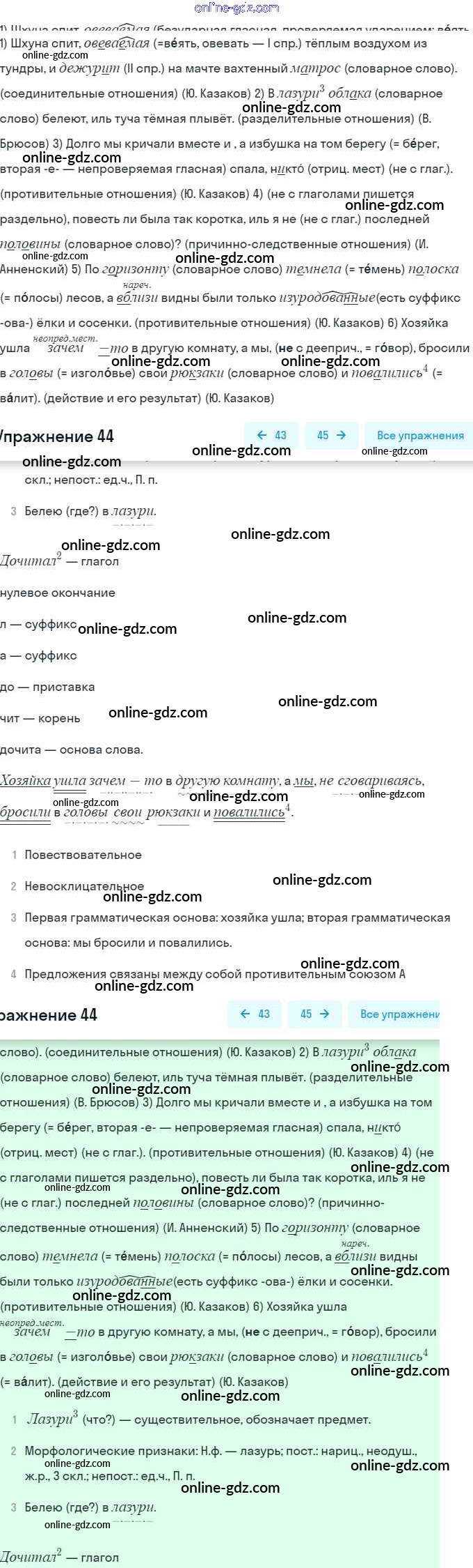 Готовые домашние задания по Русскому языку за 9 класс Учебник Рыбченкова, Александрова УМК 2018 - Упражнения 44
