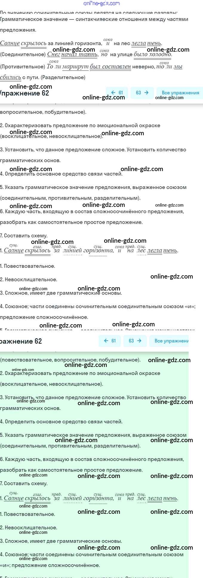 Готовые домашние задания по Русскому языку за 9 класс Учебник Рыбченкова, Александрова УМК 2018 - Упражнения 62