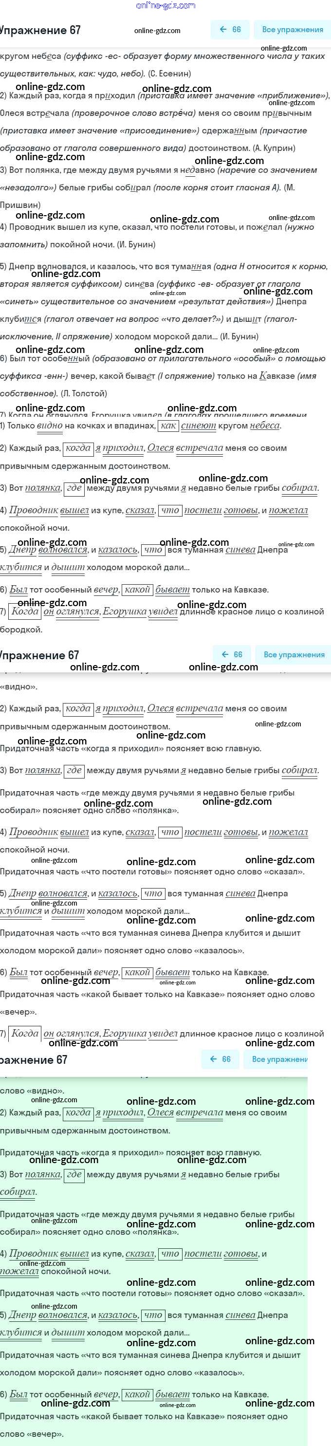 Готовые домашние задания по Русскому языку за 9 класс Учебник Рыбченкова, Александрова УМК 2018 - Упражнения 67