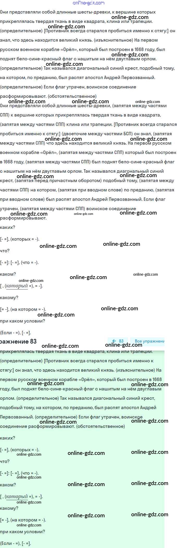 Готовые домашние задания по Русскому языку за 9 класс Учебник Рыбченкова, Александрова УМК 2018 - Упражнения 83