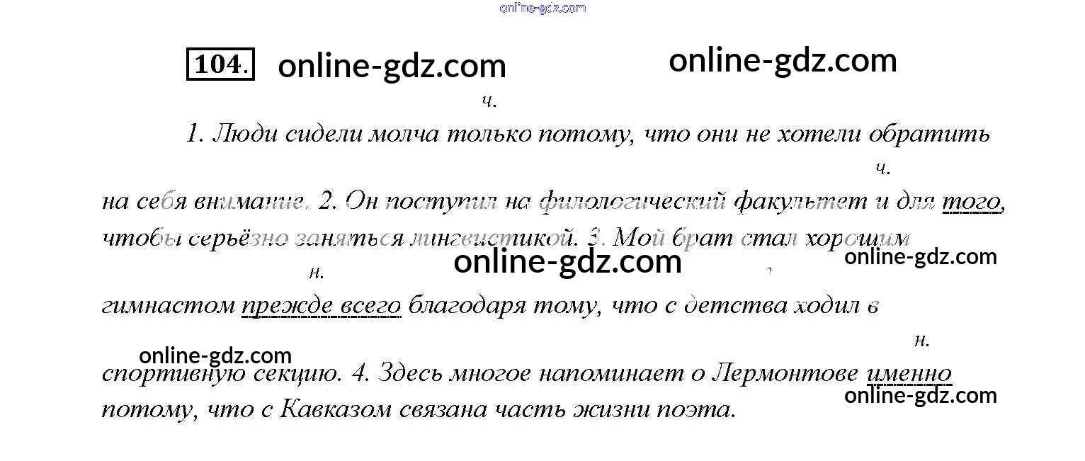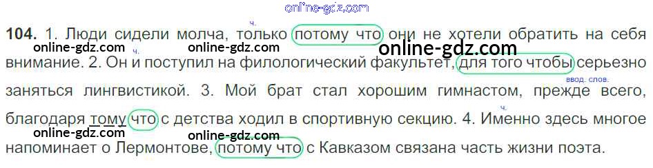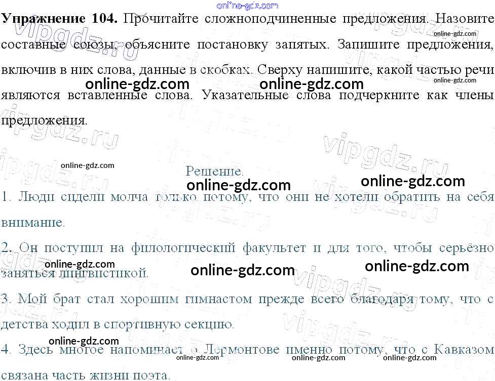 Готовые домашние задания по Русскому языку за 9 класс Учебник Тростенцова, Ладыженская 2014 - Упражнения 104