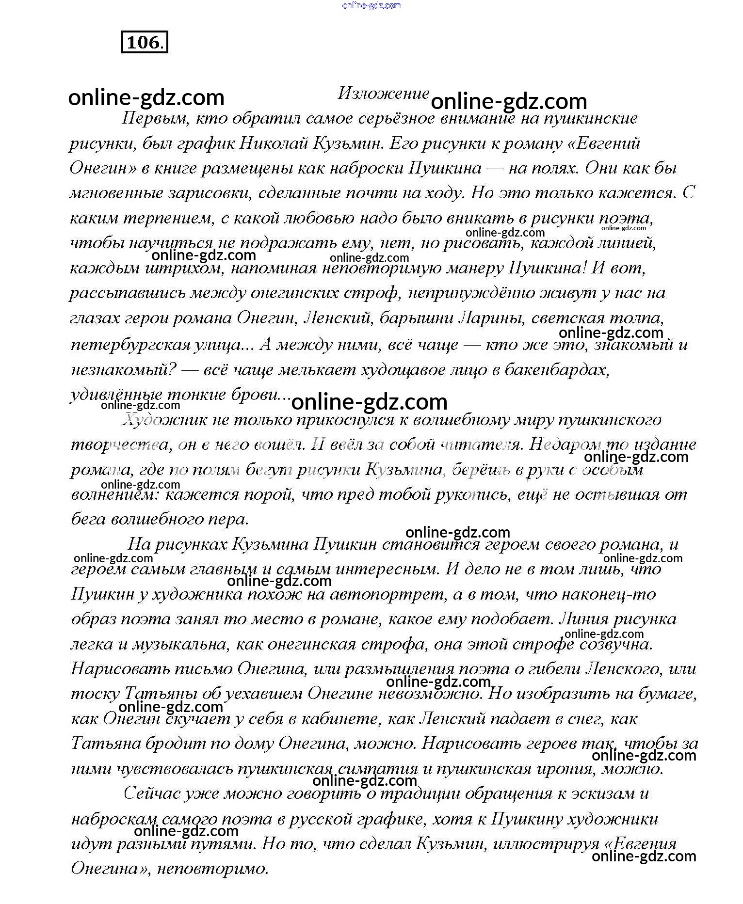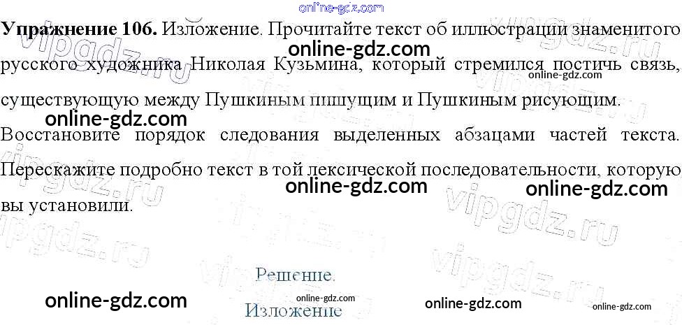 Готовые домашние задания по Русскому языку за 9 класс Учебник Тростенцова, Ладыженская 2014 - Упражнения 106