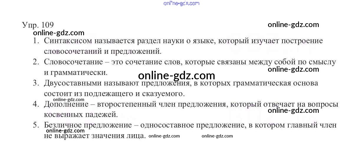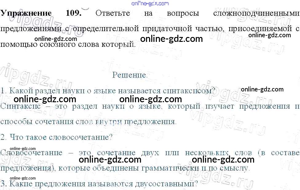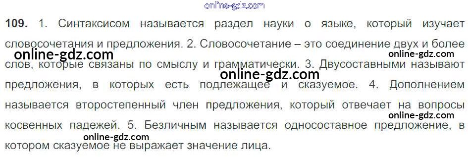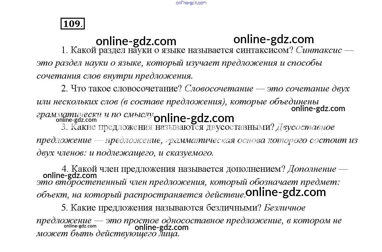Готовые домашние задания по Русскому языку за 9 класс Учебник Тростенцова, Ладыженская 2014 - Упражнения 109