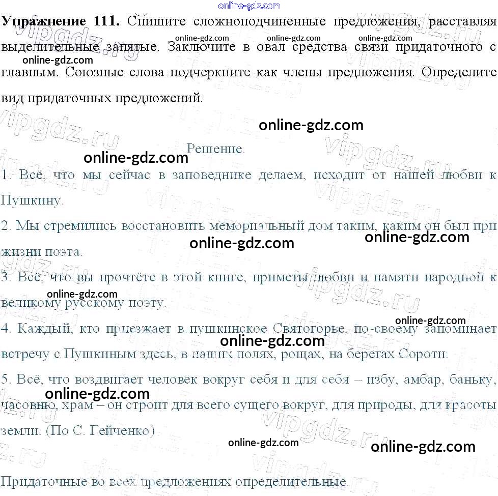 Готовые домашние задания по Русскому языку за 9 класс Учебник Тростенцова, Ладыженская 2014 - Упражнения 111