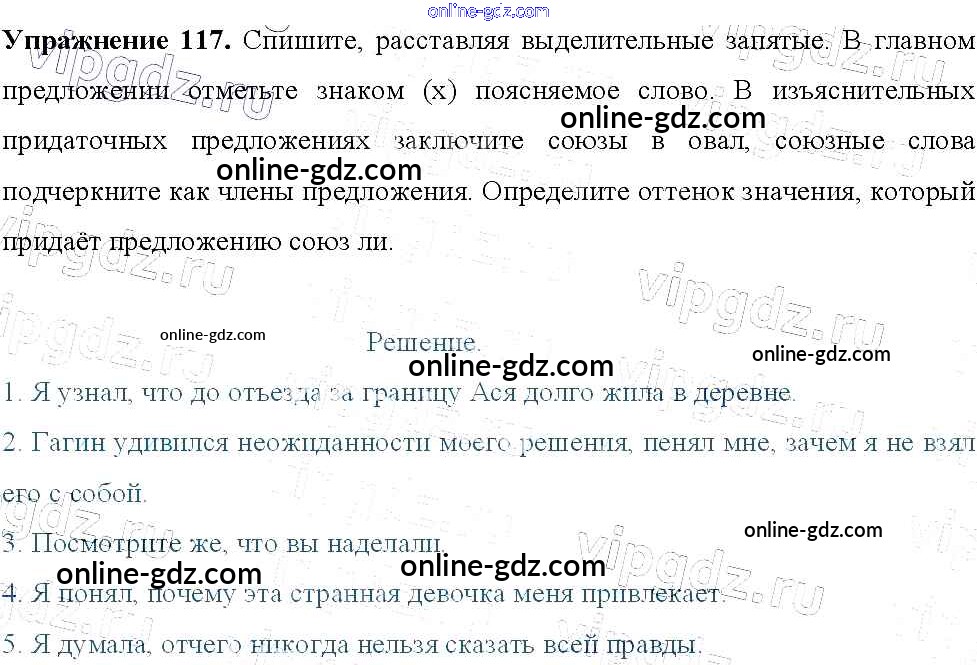 Готовые домашние задания по Русскому языку за 9 класс Учебник Тростенцова, Ладыженская 2014 - Упражнения 117