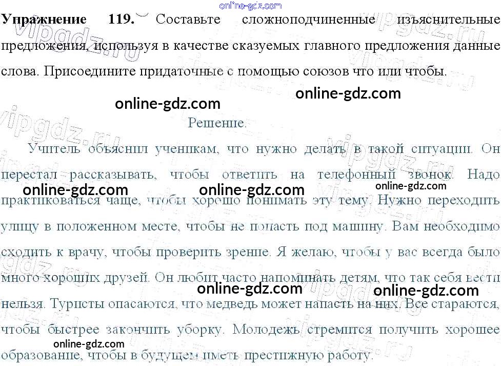 Готовые домашние задания по Русскому языку за 9 класс Учебник Тростенцова, Ладыженская 2014 - Упражнения 119