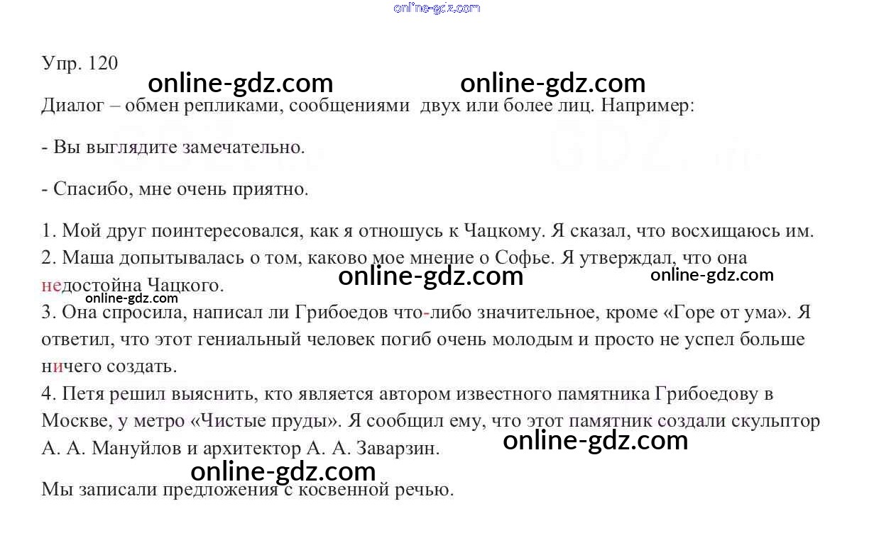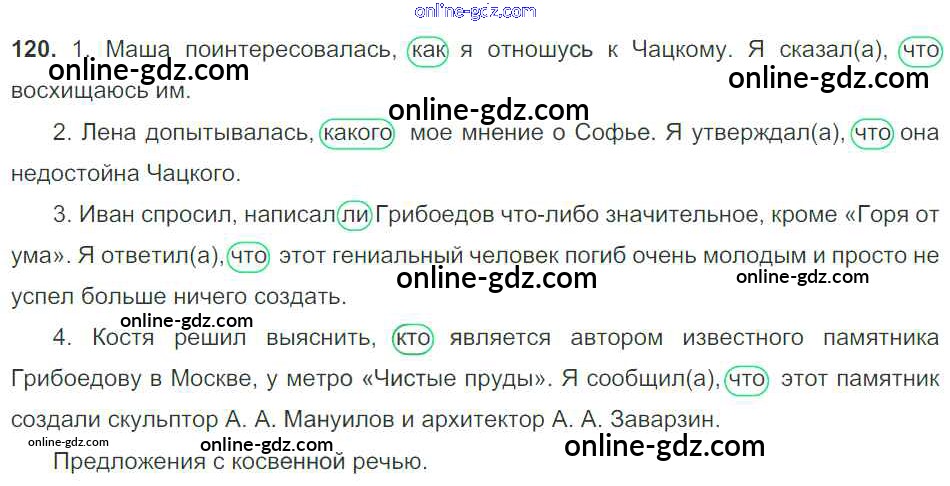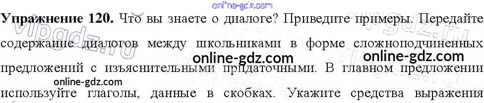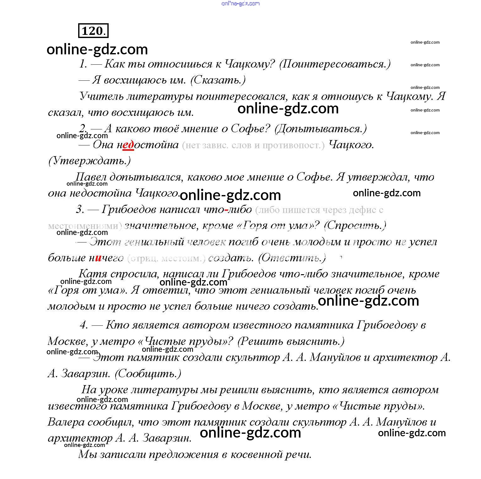 Готовые домашние задания по Русскому языку за 9 класс Учебник Тростенцова, Ладыженская 2014 - Упражнения 120