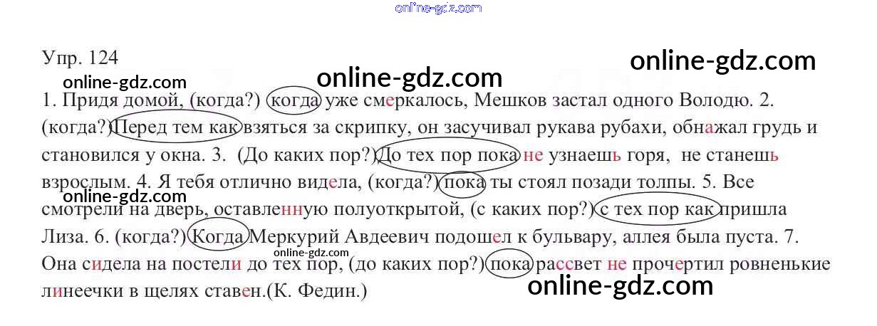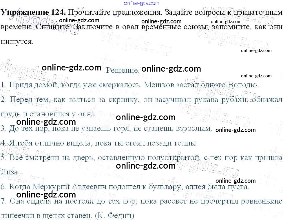 Готовые домашние задания по Русскому языку за 9 класс Учебник Тростенцова, Ладыженская 2014 - Упражнения 124