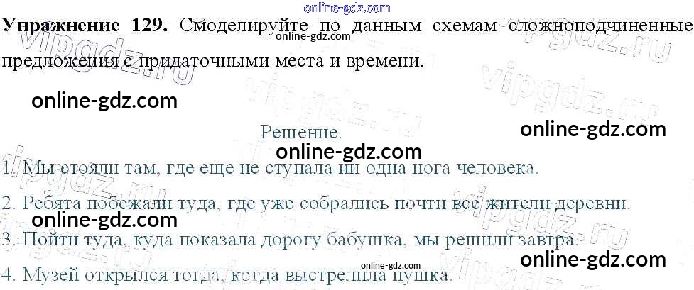 Готовые домашние задания по Русскому языку за 9 класс Учебник Тростенцова, Ладыженская 2014 - Упражнения 129