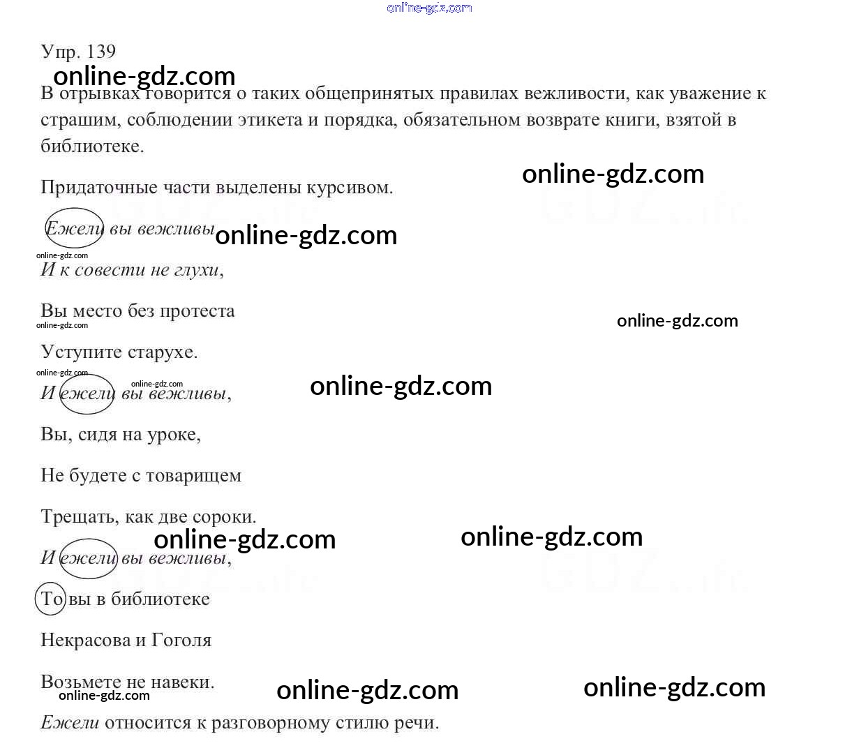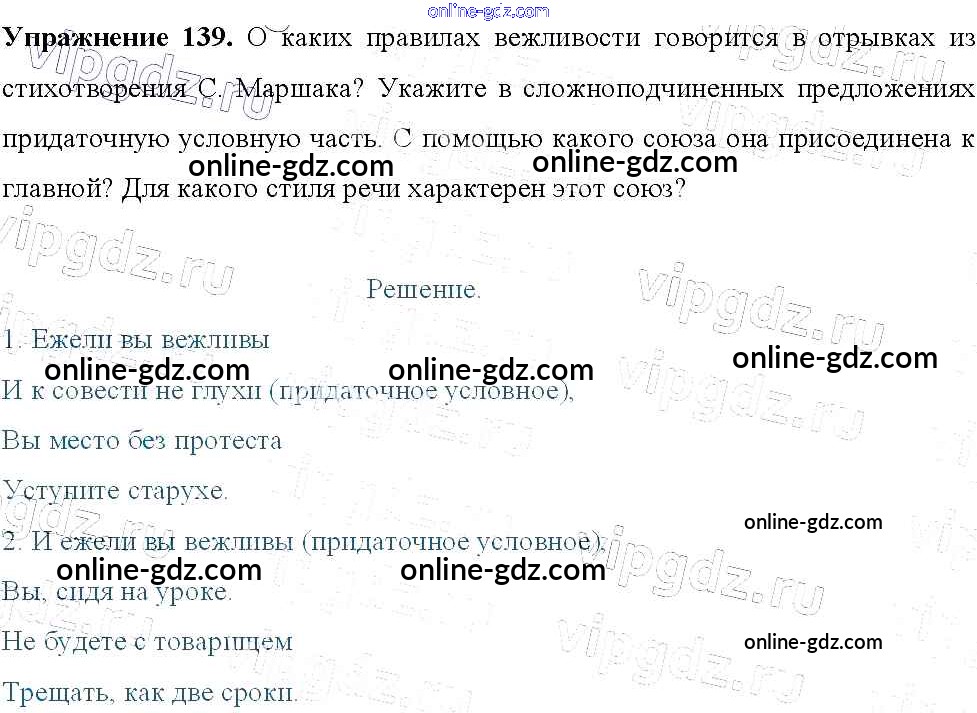 Готовые домашние задания по Русскому языку за 9 класс Учебник Тростенцова, Ладыженская 2014 - Упражнения 139