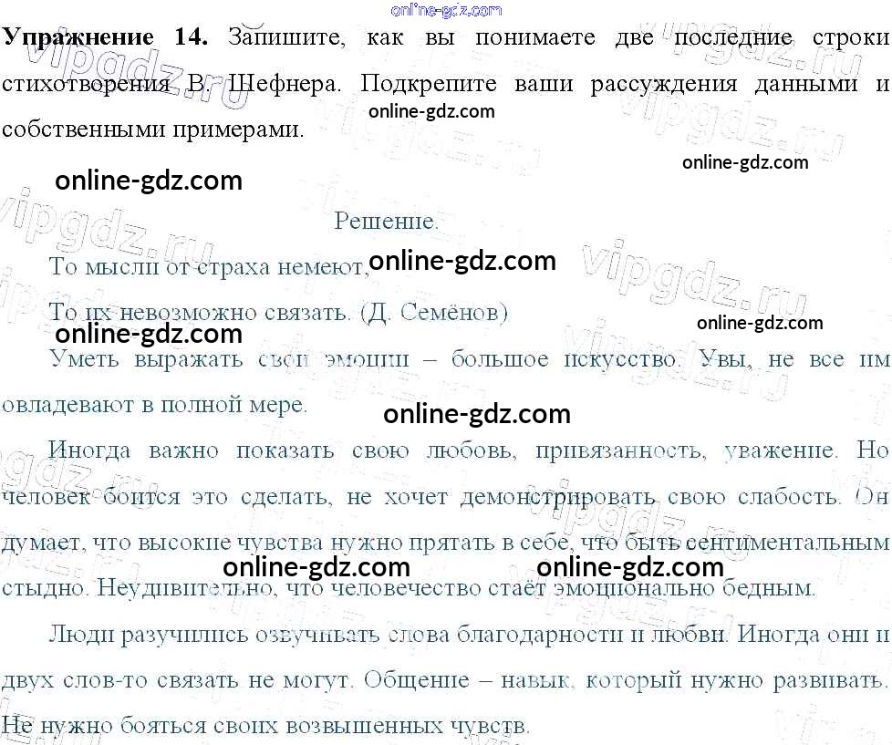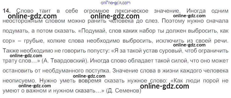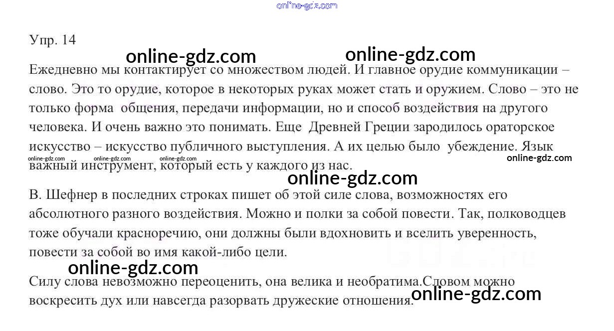 Готовые домашние задания по Русскому языку за 9 класс Учебник Тростенцова, Ладыженская 2014 - Упражнения 14