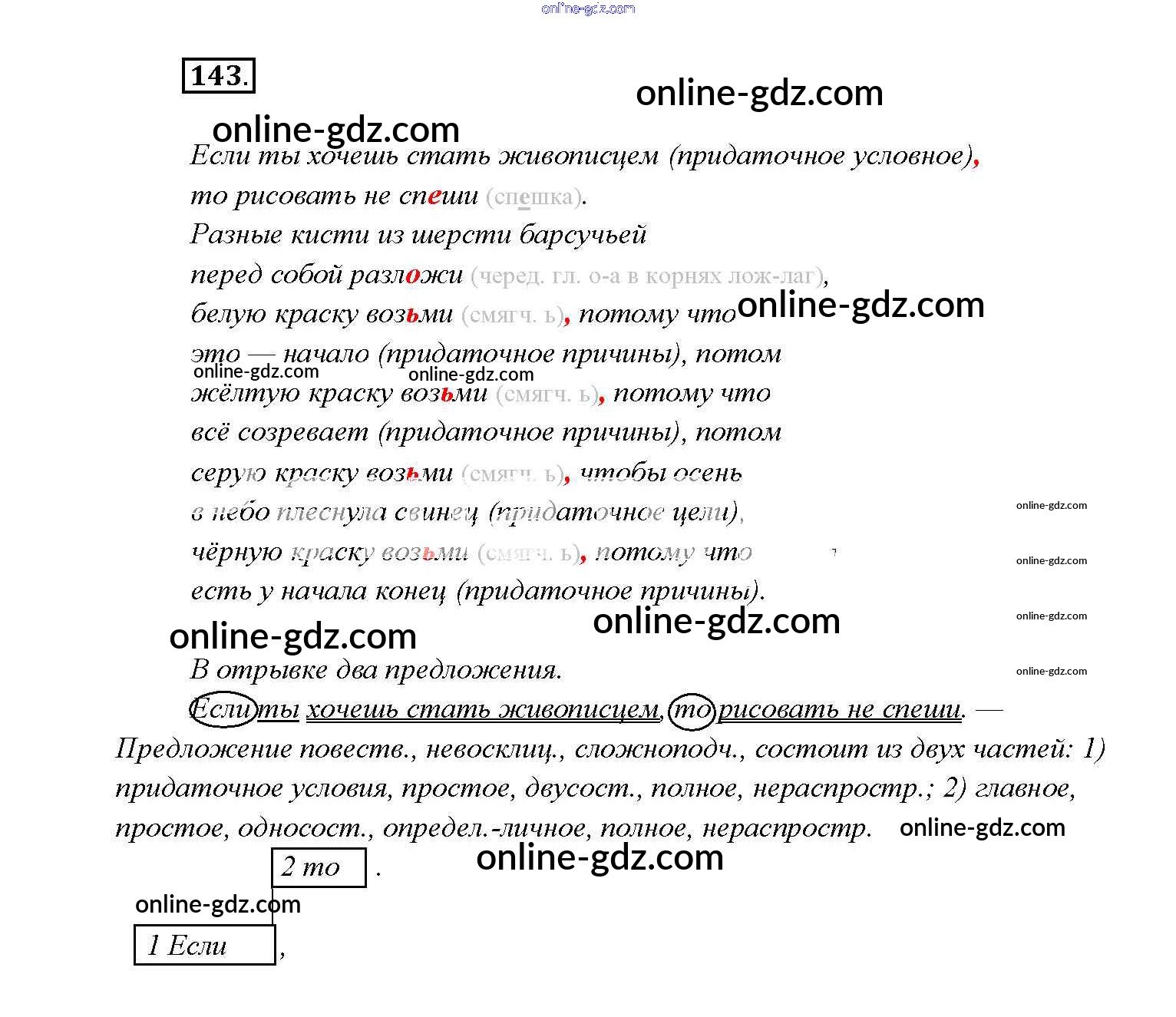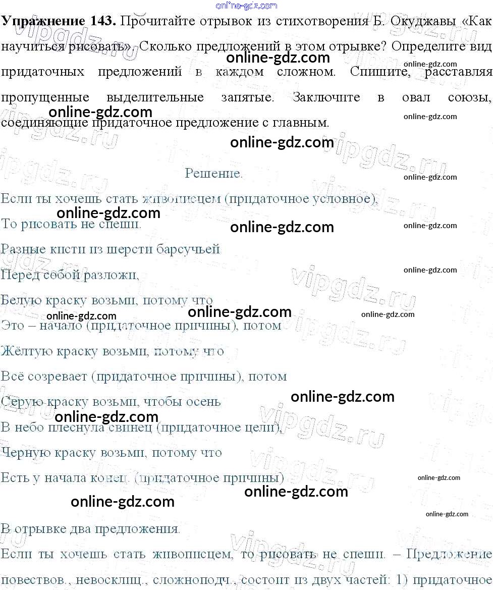 Готовые домашние задания по Русскому языку за 9 класс Учебник Тростенцова, Ладыженская 2014 - Упражнения 143