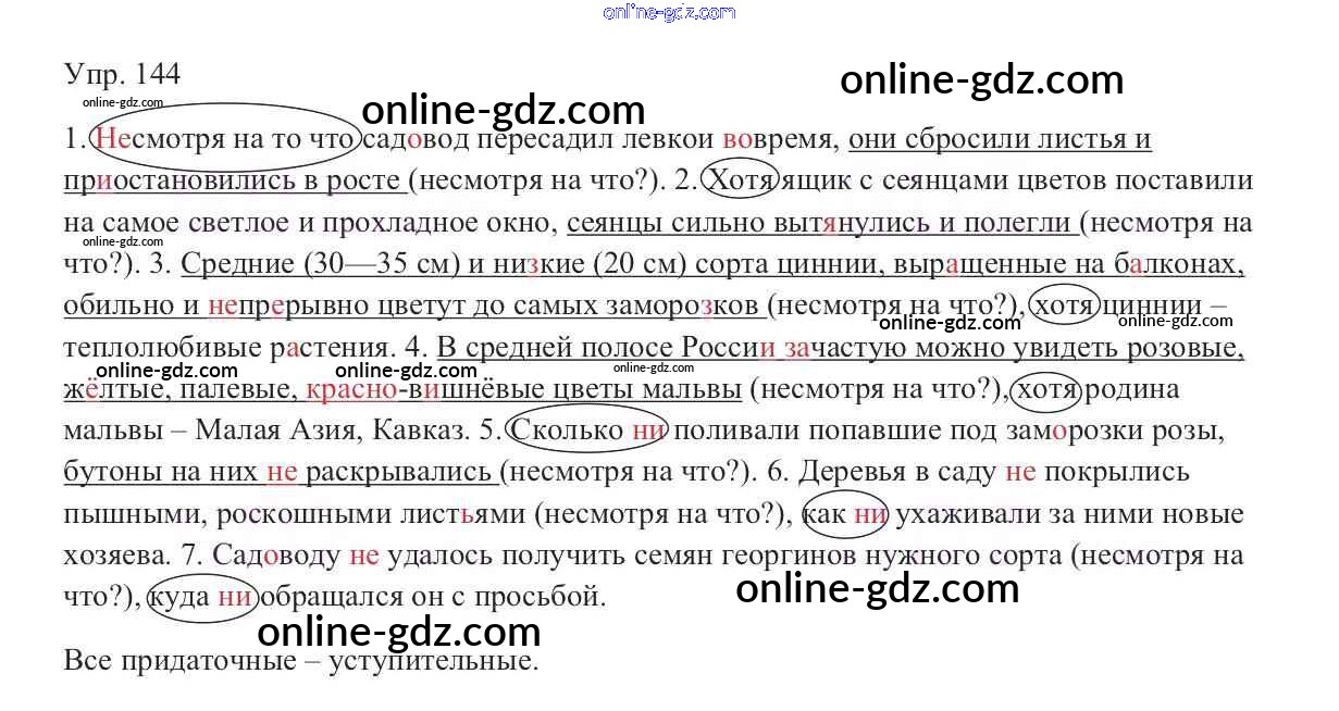Готовые домашние задания по Русскому языку за 9 класс Учебник Тростенцова, Ладыженская 2014 - Упражнения 144