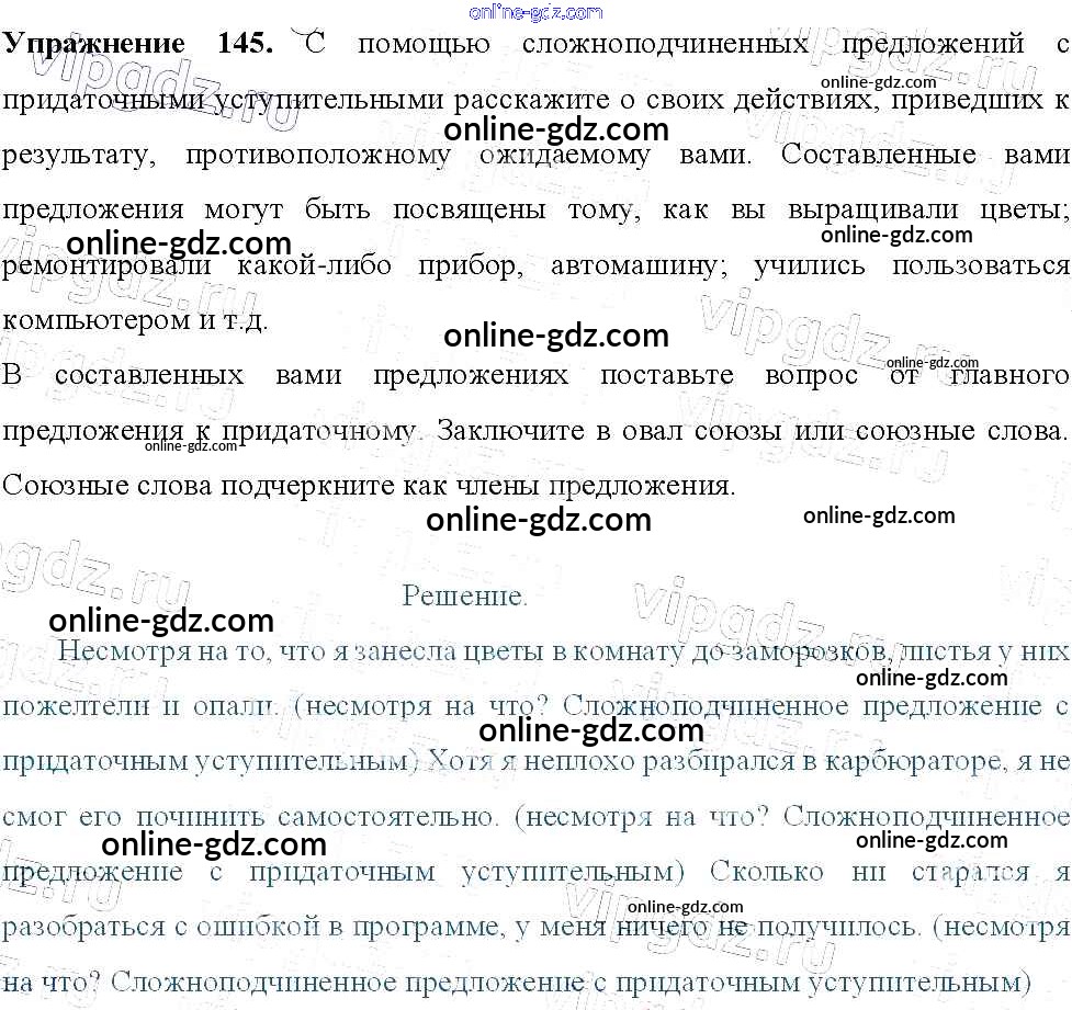 Готовые домашние задания по Русскому языку за 9 класс Учебник Тростенцова, Ладыженская 2014 - Упражнения 145