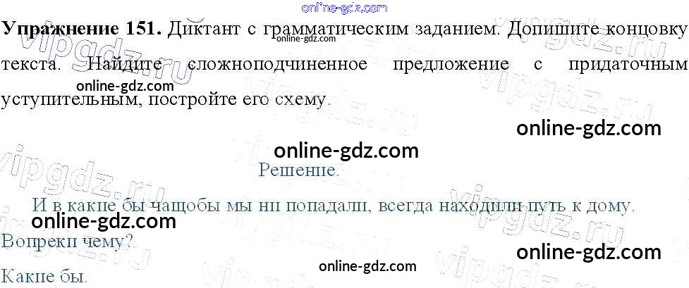 Готовые домашние задания по Русскому языку за 9 класс Учебник Тростенцова, Ладыженская 2014 - Упражнения 151