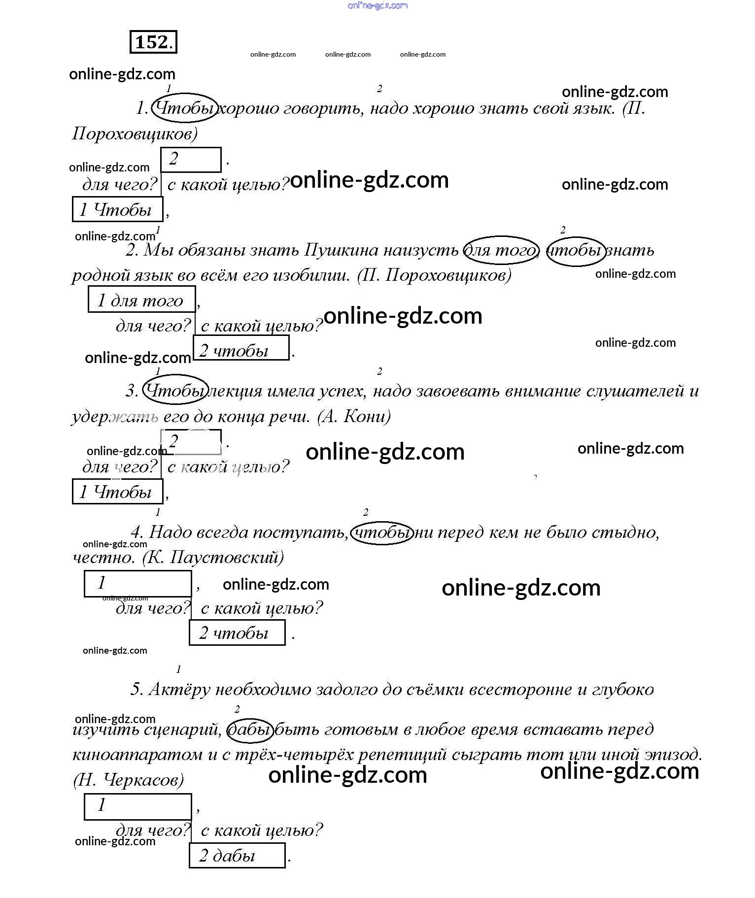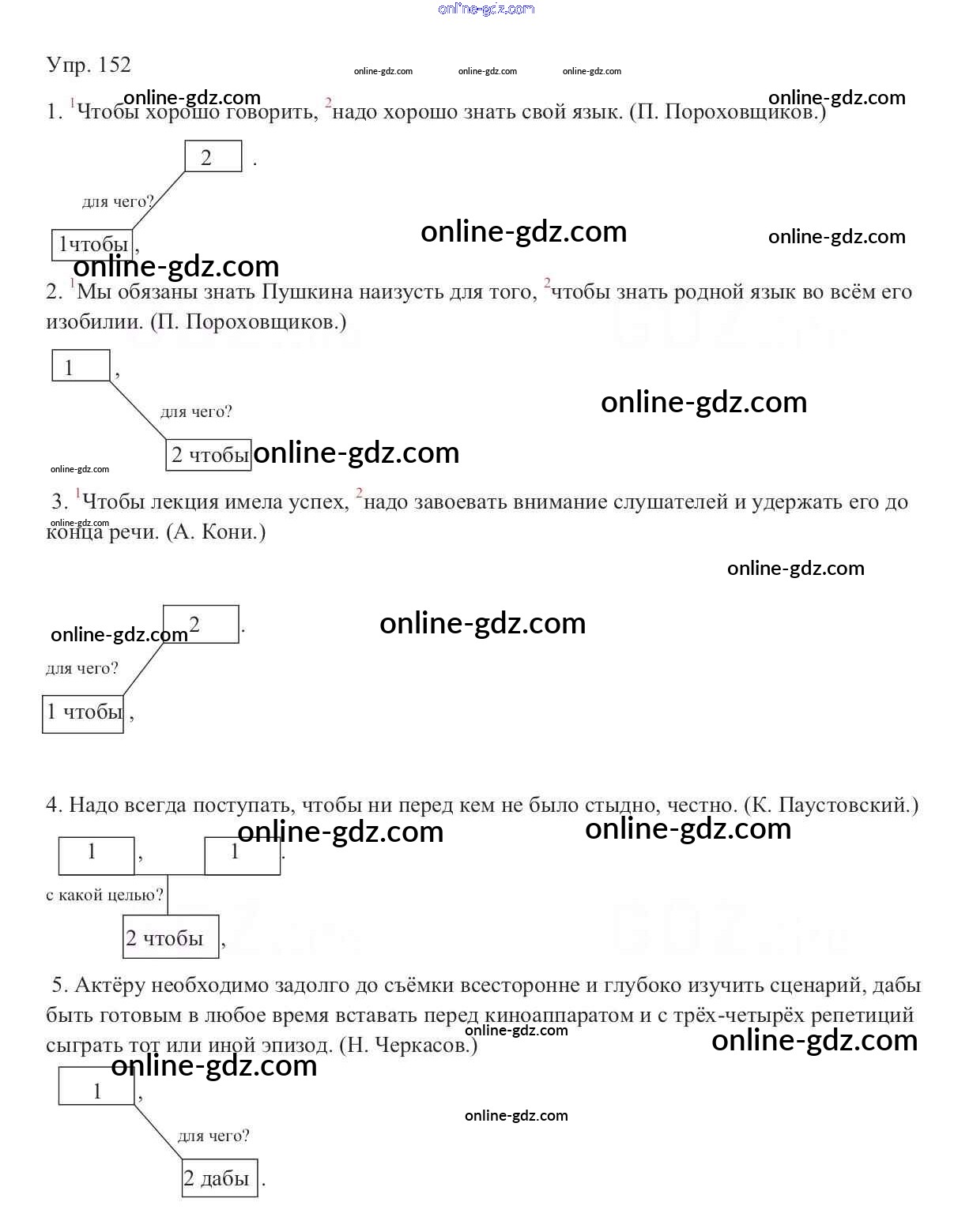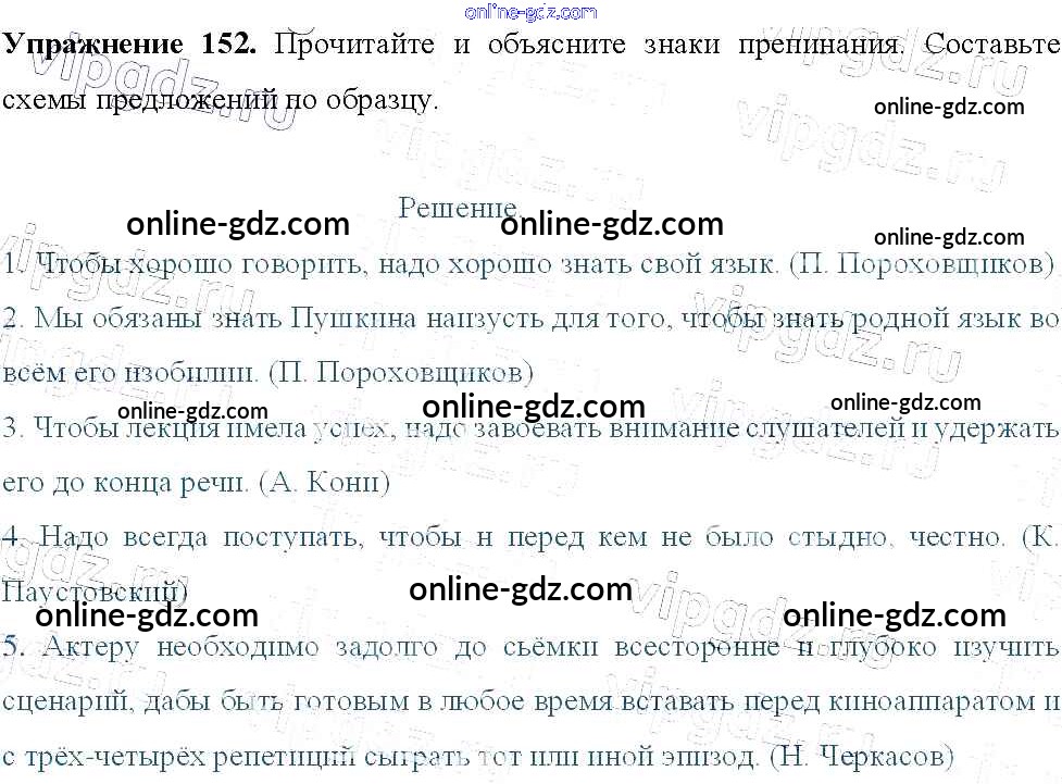 Готовые домашние задания по Русскому языку за 9 класс Учебник Тростенцова, Ладыженская 2014 - Упражнения 152