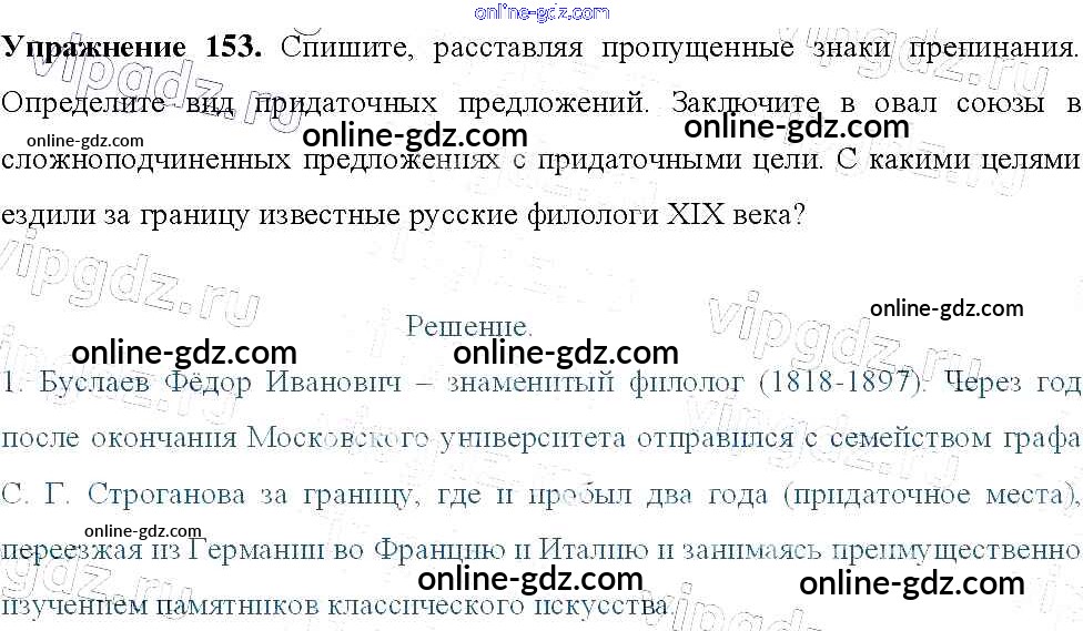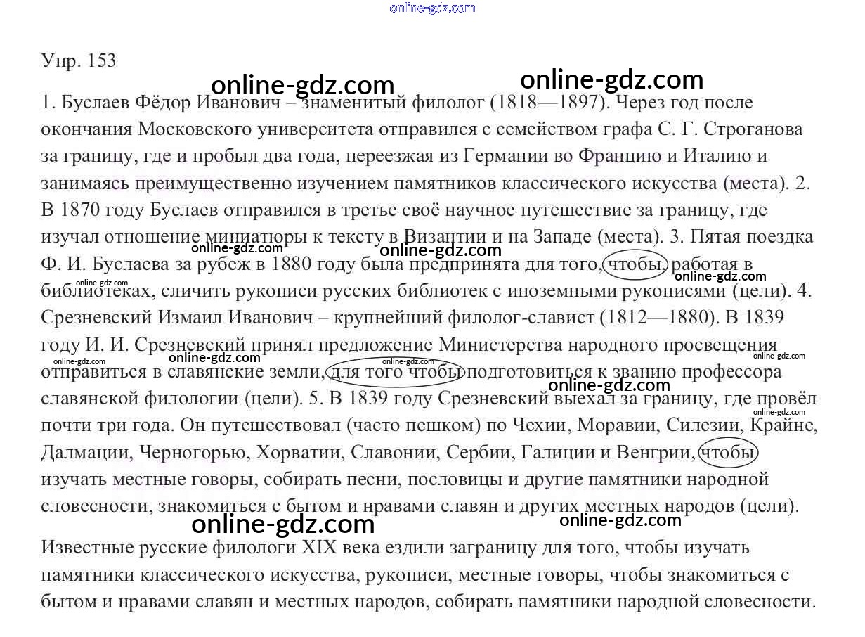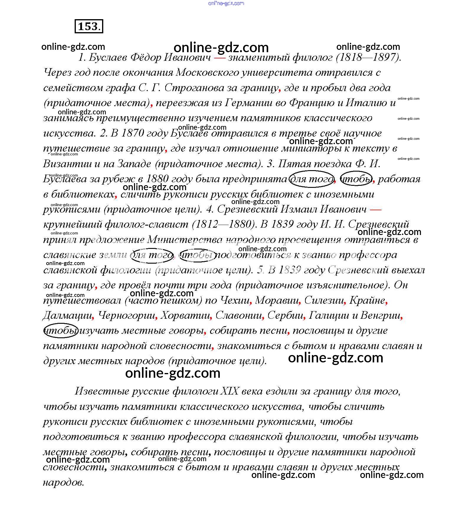 Готовые домашние задания по Русскому языку за 9 класс Учебник Тростенцова, Ладыженская 2014 - Упражнения 153