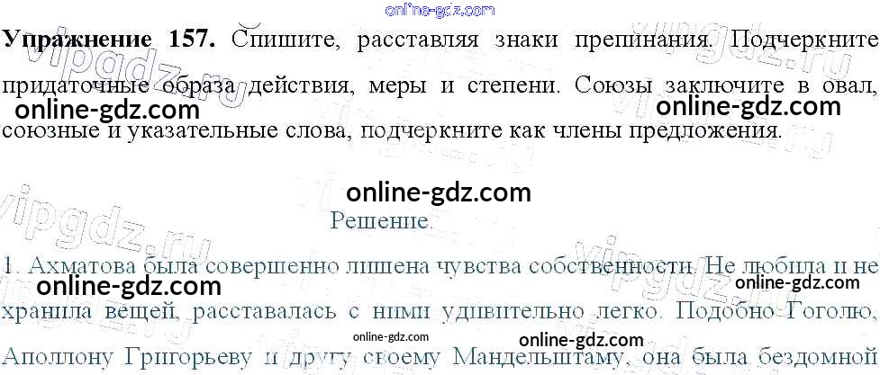 Готовые домашние задания по Русскому языку за 9 класс Учебник Тростенцова, Ладыженская 2014 - Упражнения 157
