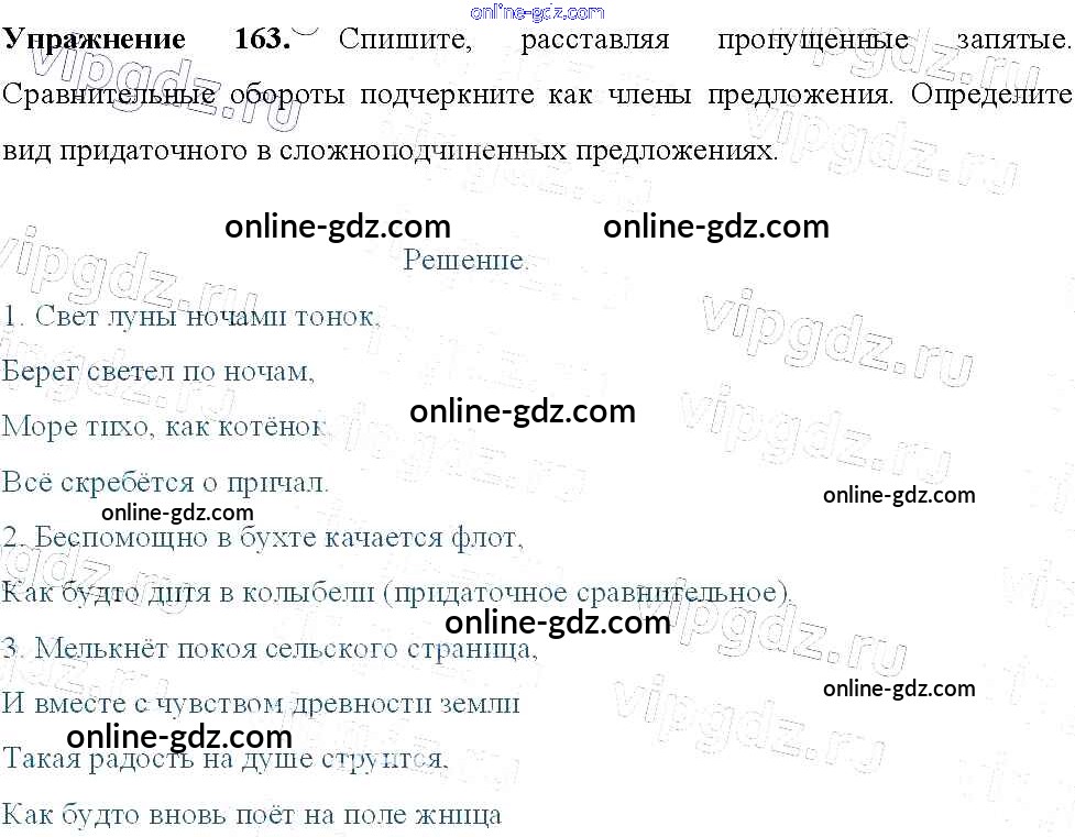 Готовые домашние задания по Русскому языку за 9 класс Учебник Тростенцова, Ладыженская 2014 - Упражнения 163