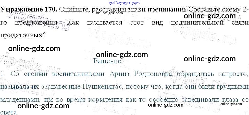 Готовые домашние задания по Русскому языку за 9 класс Учебник Тростенцова, Ладыженская 2014 - Упражнения 170