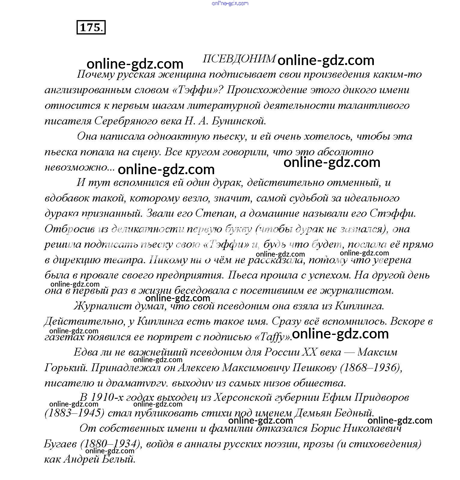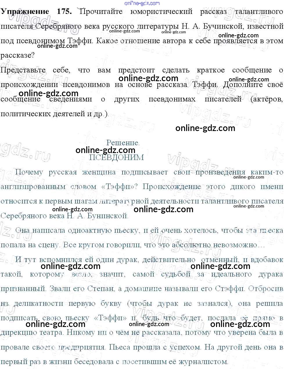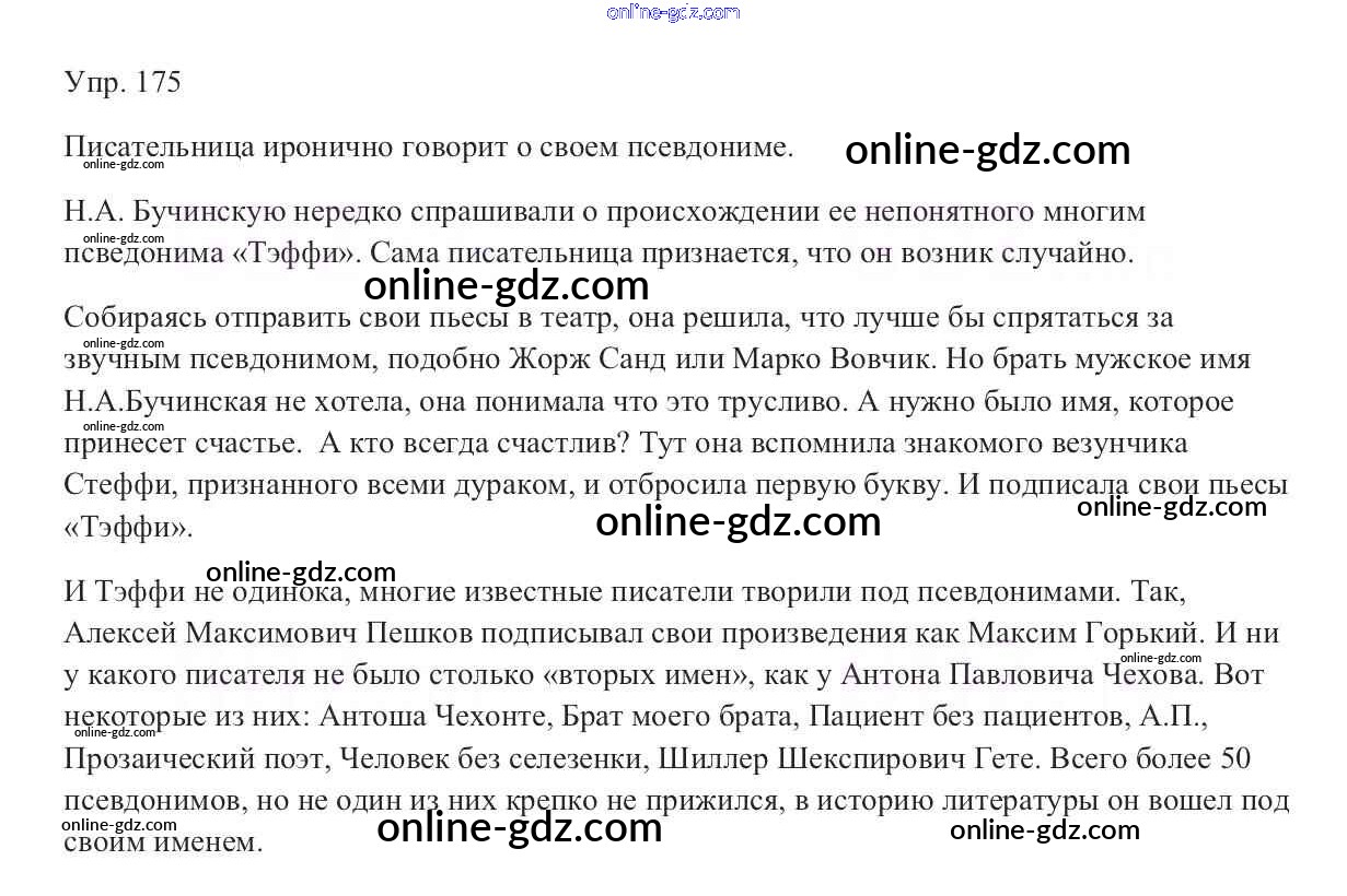 Готовые домашние задания по Русскому языку за 9 класс Учебник Тростенцова, Ладыженская 2014 - Упражнения 175