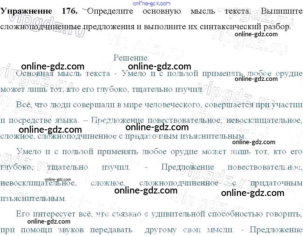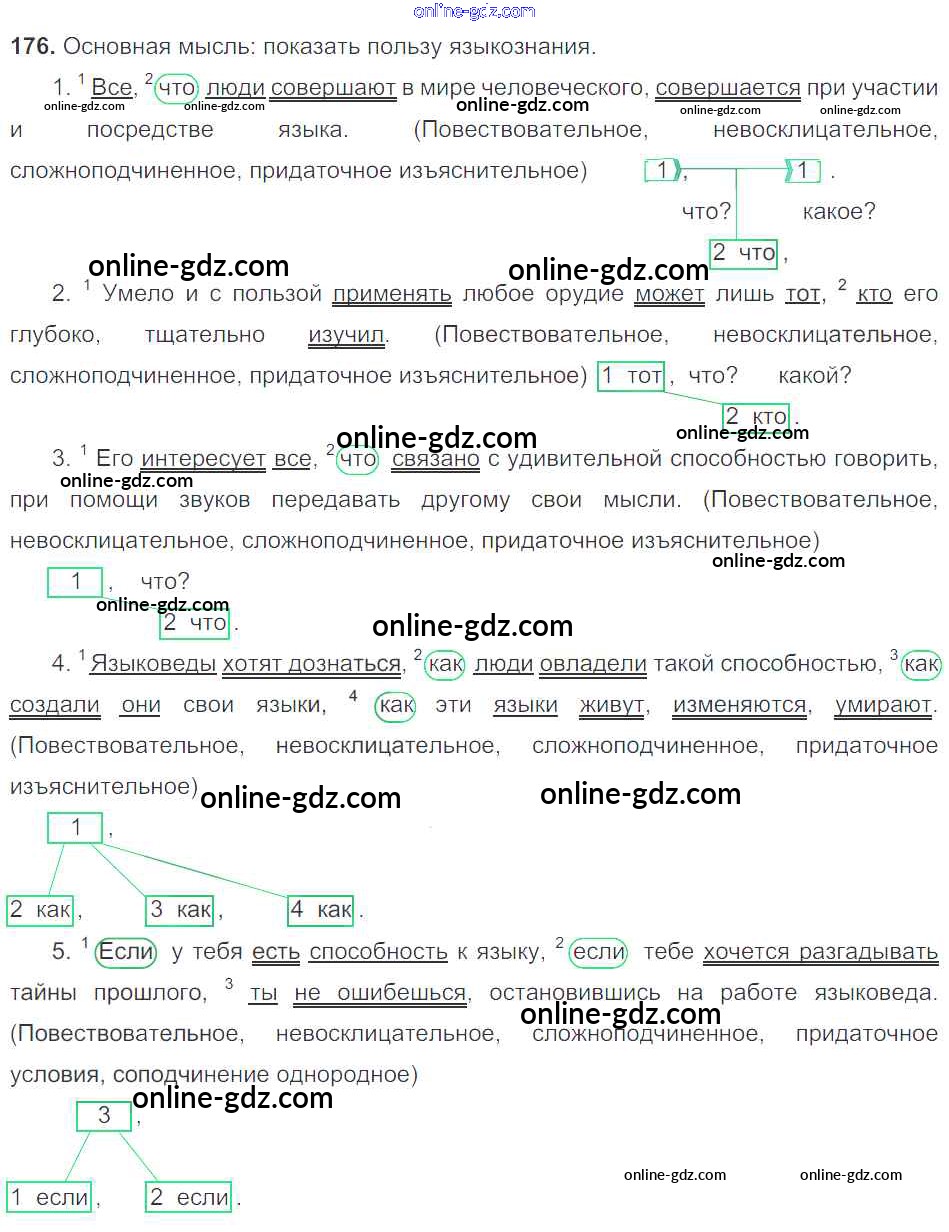 Готовые домашние задания по Русскому языку за 9 класс Учебник Тростенцова, Ладыженская 2014 - Упражнения 176