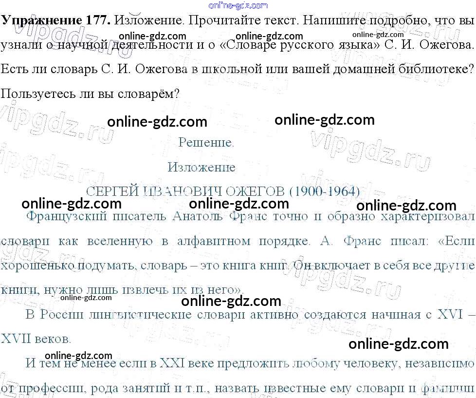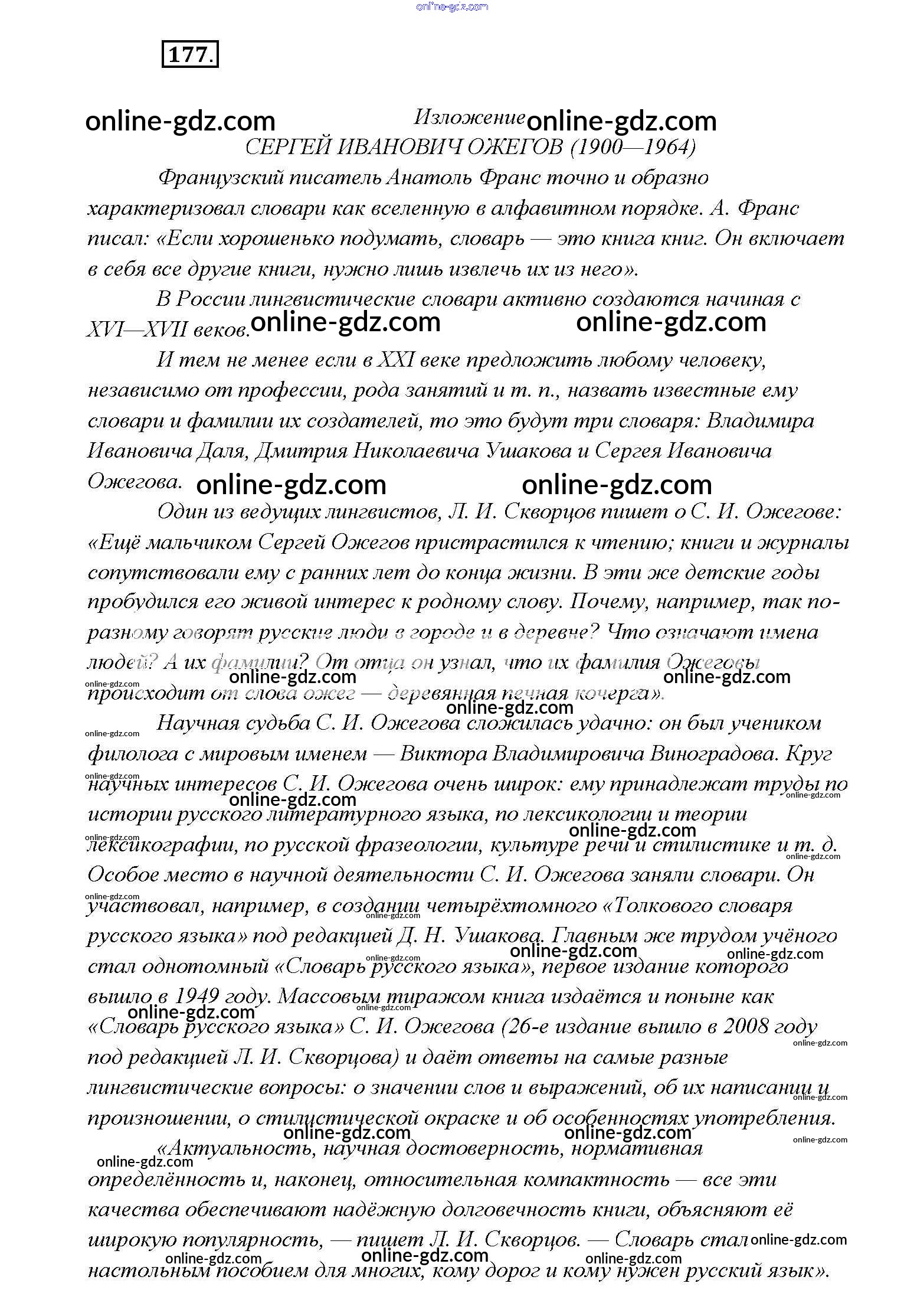 Готовые домашние задания по Русскому языку за 9 класс Учебник Тростенцова, Ладыженская 2014 - Упражнения 177
