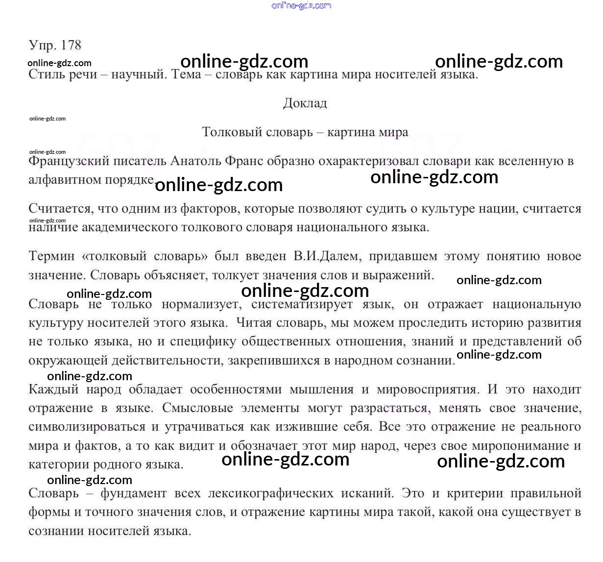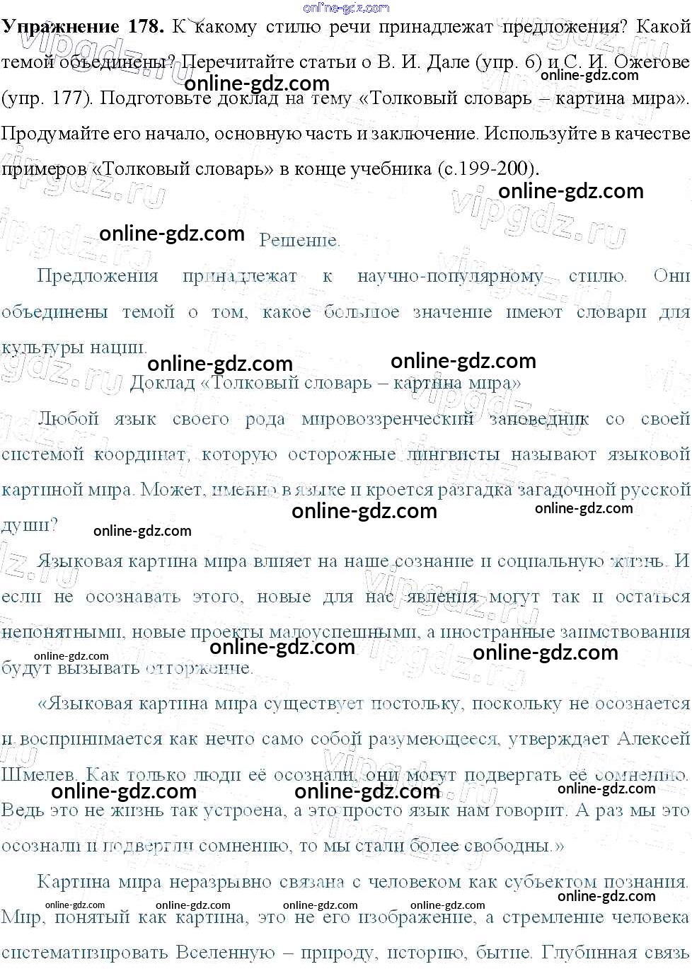 Готовые домашние задания по Русскому языку за 9 класс Учебник Тростенцова, Ладыженская 2014 - Упражнения 178