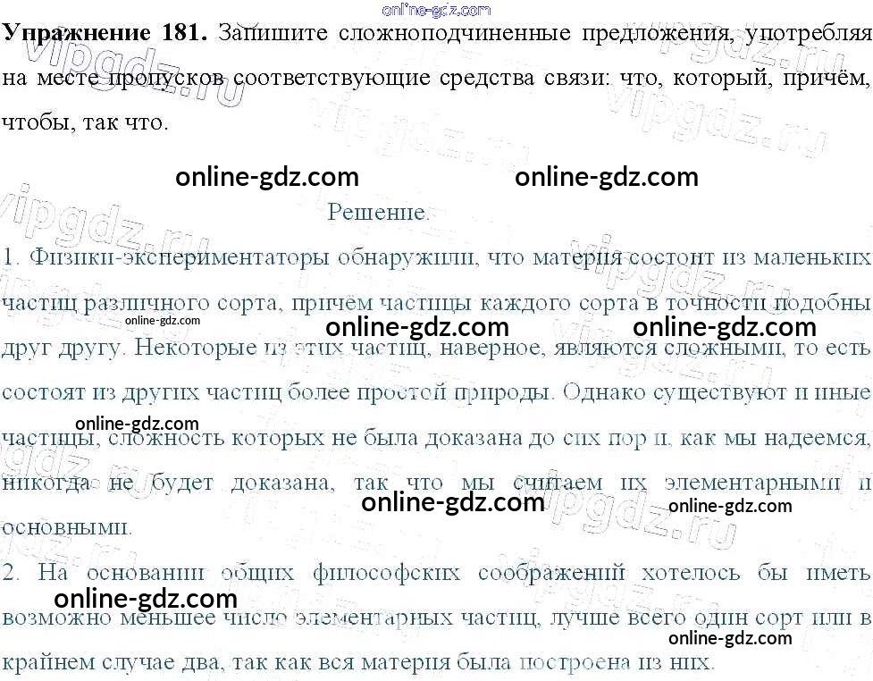 Готовые домашние задания по Русскому языку за 9 класс Учебник Тростенцова, Ладыженская 2014 - Упражнения 181