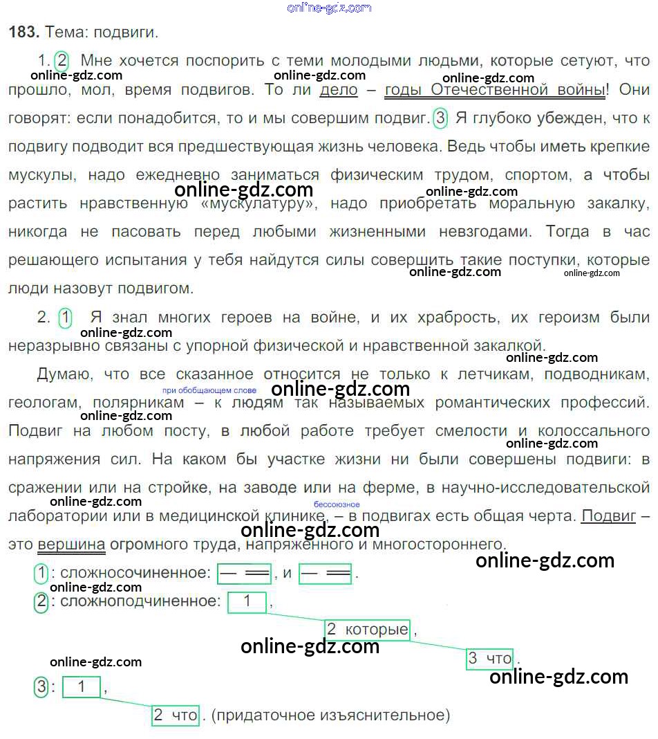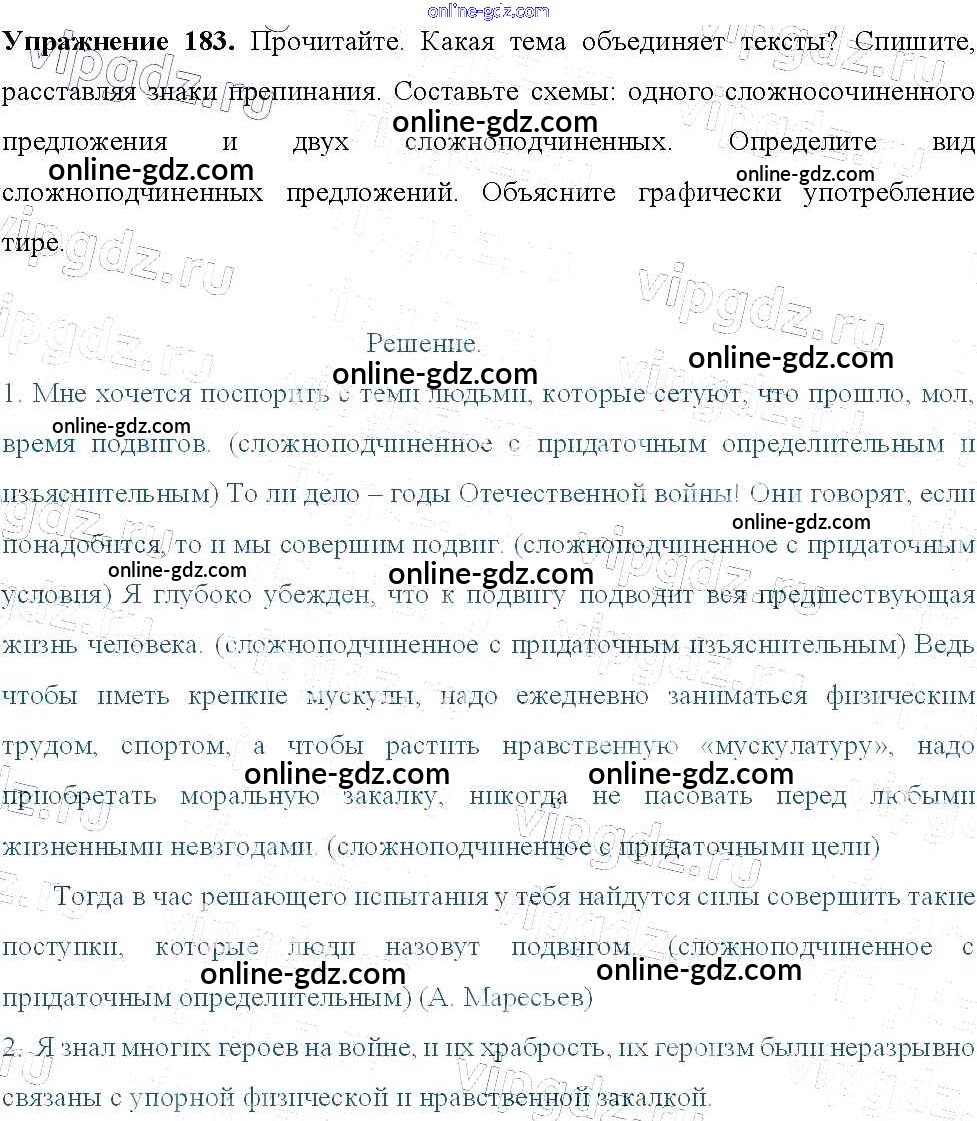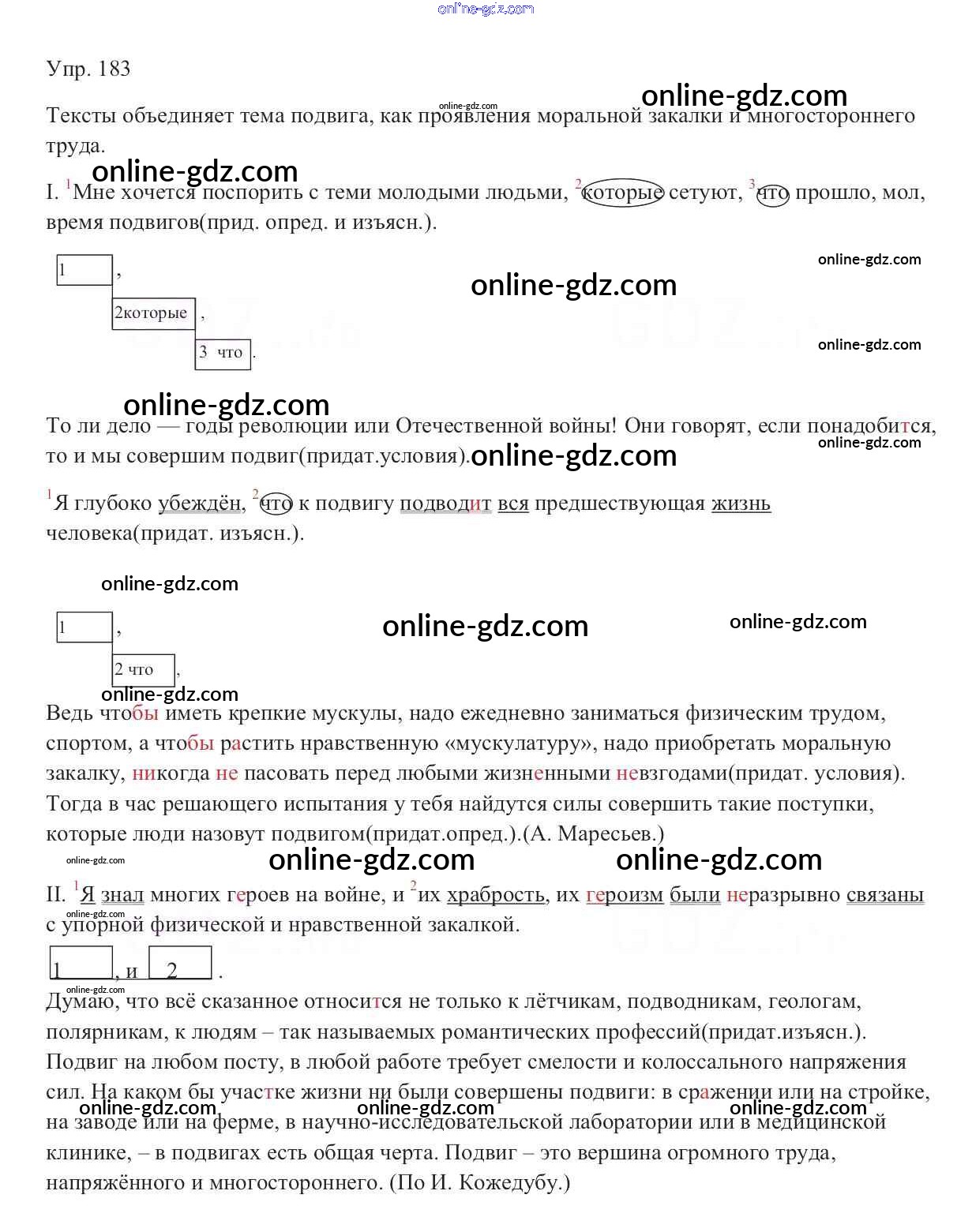 Готовые домашние задания по Русскому языку за 9 класс Учебник Тростенцова, Ладыженская 2014 - Упражнения 183