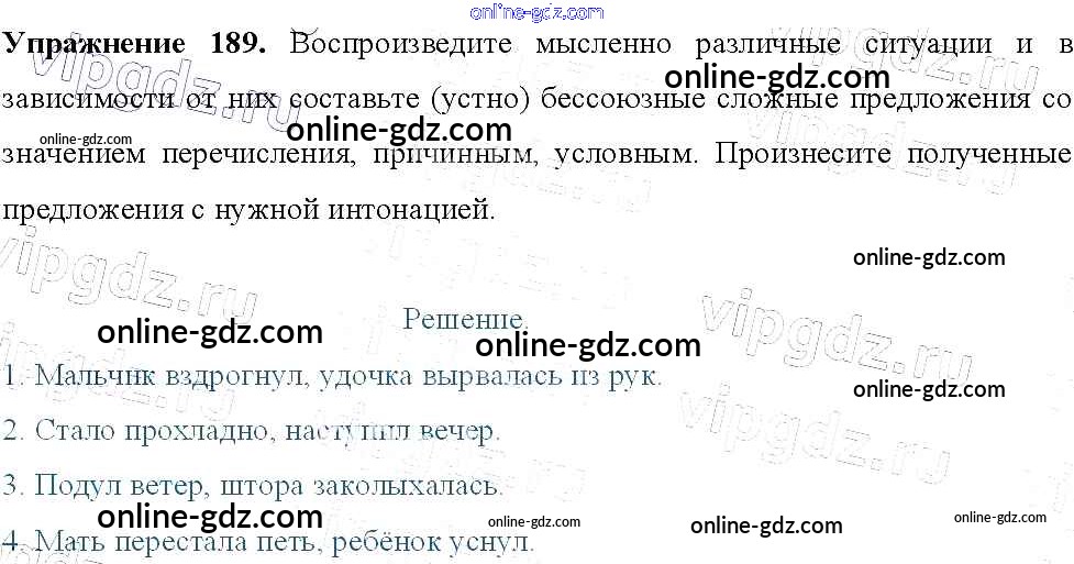 Готовые домашние задания по Русскому языку за 9 класс Учебник Тростенцова, Ладыженская 2014 - Упражнения 189