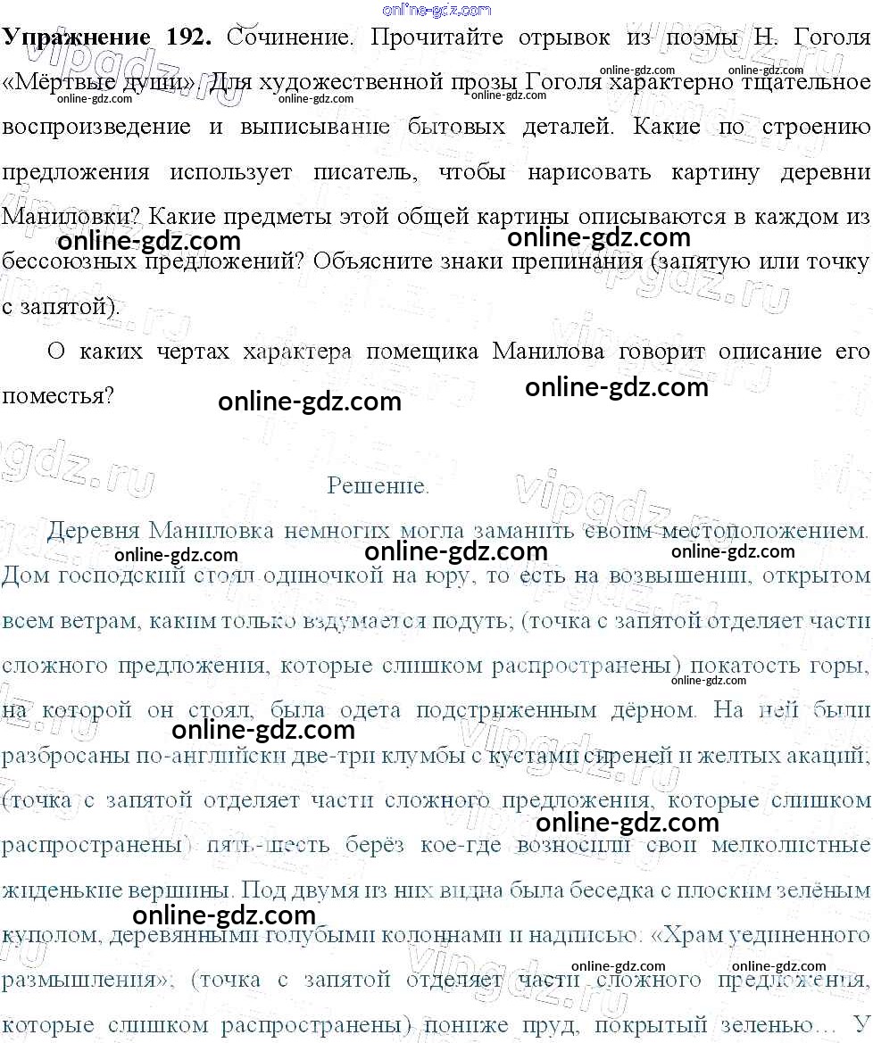 Готовые домашние задания по Русскому языку за 9 класс Учебник Тростенцова, Ладыженская 2014 - Упражнения 192
